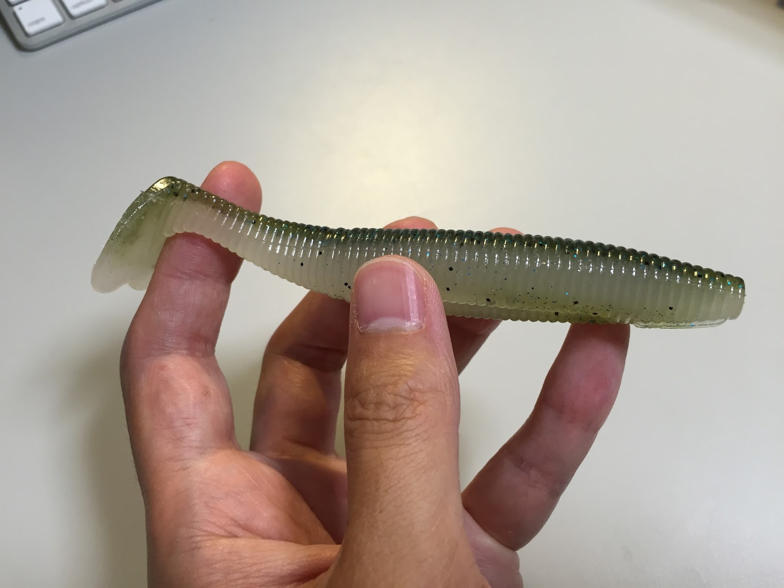 動画で語られていますが、シャッドテール系ワームでは後発とういことで、他社の製品を研究して作られているようです。特に弱点と言われるフッキングの悪さには、スリットを入れて対策をしているとか。ゲーリーマテリアルで、他社を研究して作られているのだからこりゃ釣れるでしょ。たぶん。