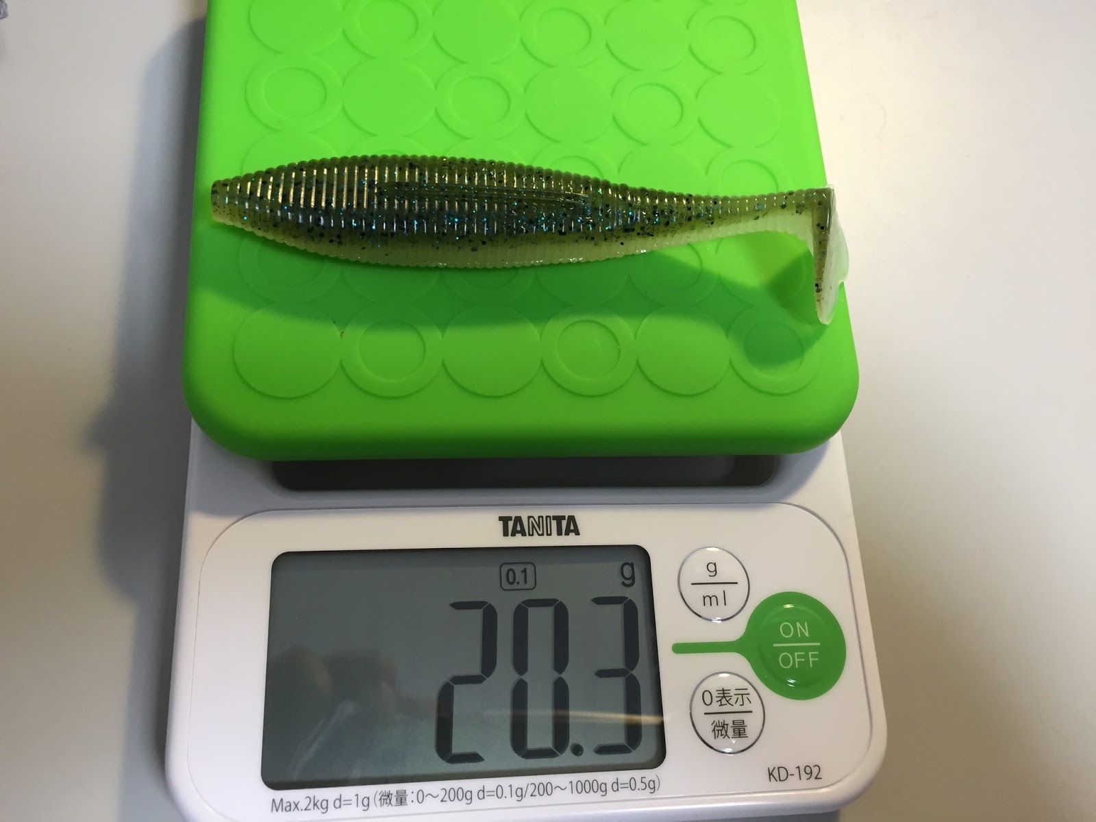これによりスイムバランスを安定させ、他の製品にはない波動を生むシャッドテールワームとなっているようです。