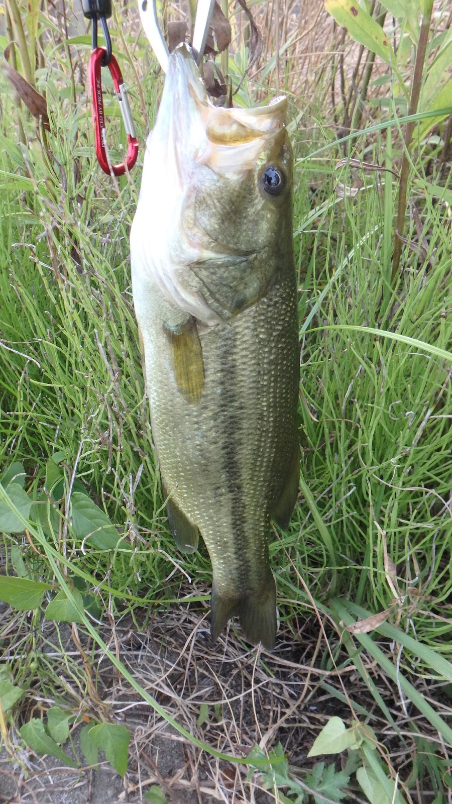 小さいけど。25cmぐらい。でも良かった。2匹目出た。さすがお助けポイントだ。なんとか釣果をもたらしてくれる。このバスはカレントもシェードもなく、水深も浅いところにいました。夏暑いからと言って必ずしもバスがパターン通りの活動をしている訳ではないのですな。あまり固定観念に囚われない方がいいですね。