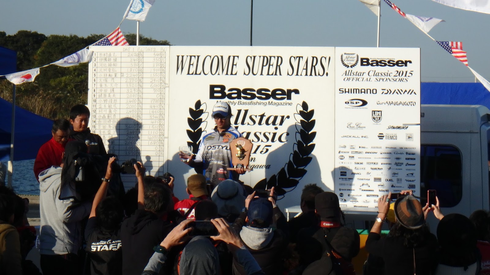13時からウェイインが始まった。初めの方はなかなか今日は厳しいという話がほとんどだった。確かに自分も今日はボウズなので、よくわかる、そうだよな今日は厳しいよなんて思っていたが、後半上位陣は結構釣っている。さすがはオールスターだな。そんななか福島健プロがリミットメイクでトップに立った!5匹そろえた人がいなかったので、さすがといった感じで今まで一番盛り上がった。