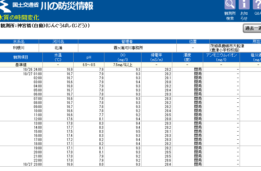 ※追記(2019.11.01) 水温・水位などをまとめてわかりやすく表示するサイトを作りましたので、よろしければご覧下さい。