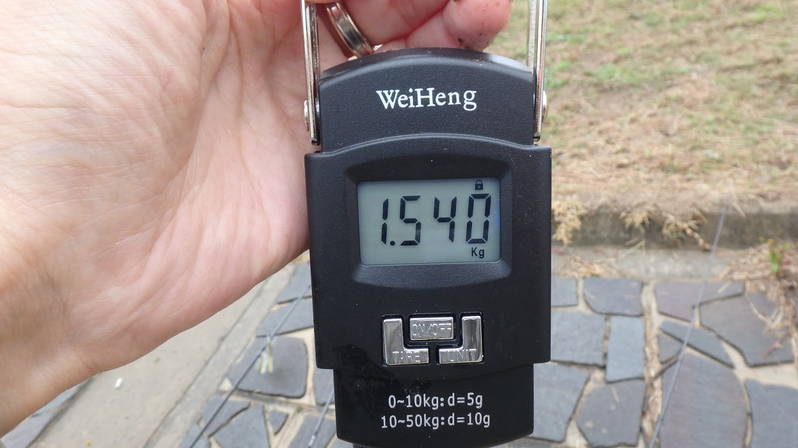 ネットごと測っているので、-300gして、1.2kg でした。サイズの割にはやはり軽かったな。このスケールはアマゾンで買った激安スケールです。値段は600円ぐらい。こんなんでちゃんと測れるのか心配になりますが意外とちゃんとしてます。