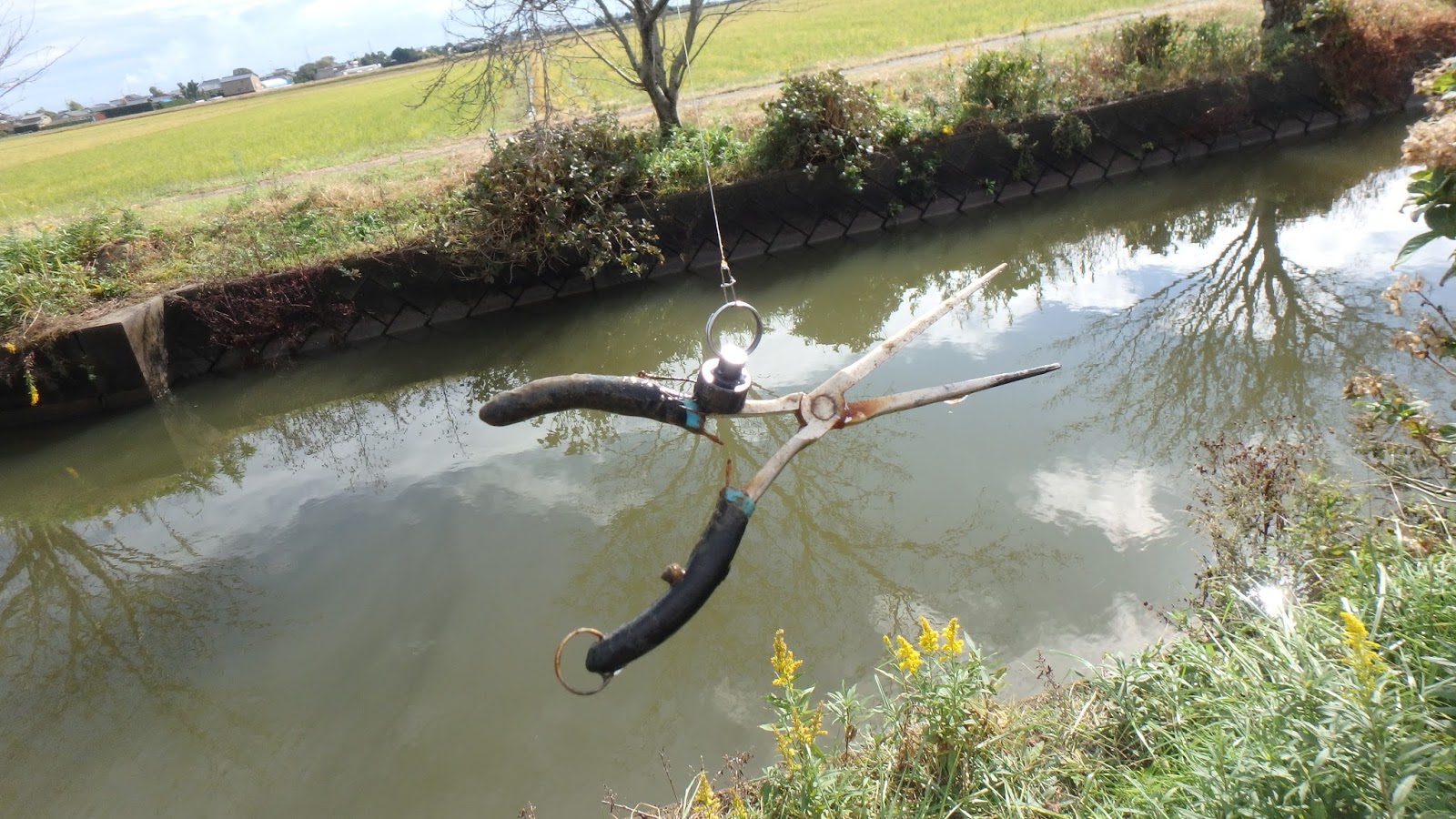 久々の40upでうれしかったわ。その後反応なくなったので、移動することに。与田浦水路に向かう。ここは、前々回フィッシュグリップとプライヤー2本を落としてしまったところだ。ここでまずルアマガに書いてあった落し物回収方法を試してみることにした。磁石を使って水中を探るのだが、半信半疑でやってみたところ、キマシタ!