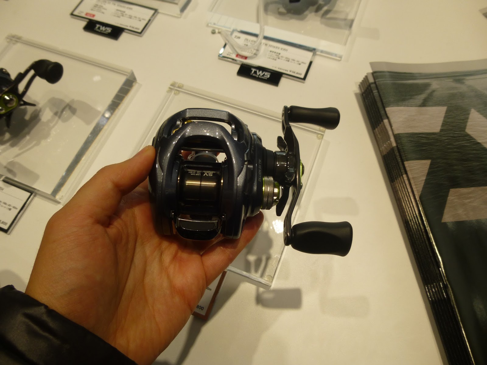 ジリオンSV TW。ほとんど大差ない。重量が30gぐらい重いですが、200gは切るので十分ですね。こっちの方が剛性はあるし、安いので、ジリオンでも良いと思う。 赤羽修弥さんが目の前にいらしたので、どっちがいいのと質問しましたが、どっちも良いとのことです(笑)。タフな使い方をするならジリオンで、軽いの使う時はスティーズでといったお話でした。