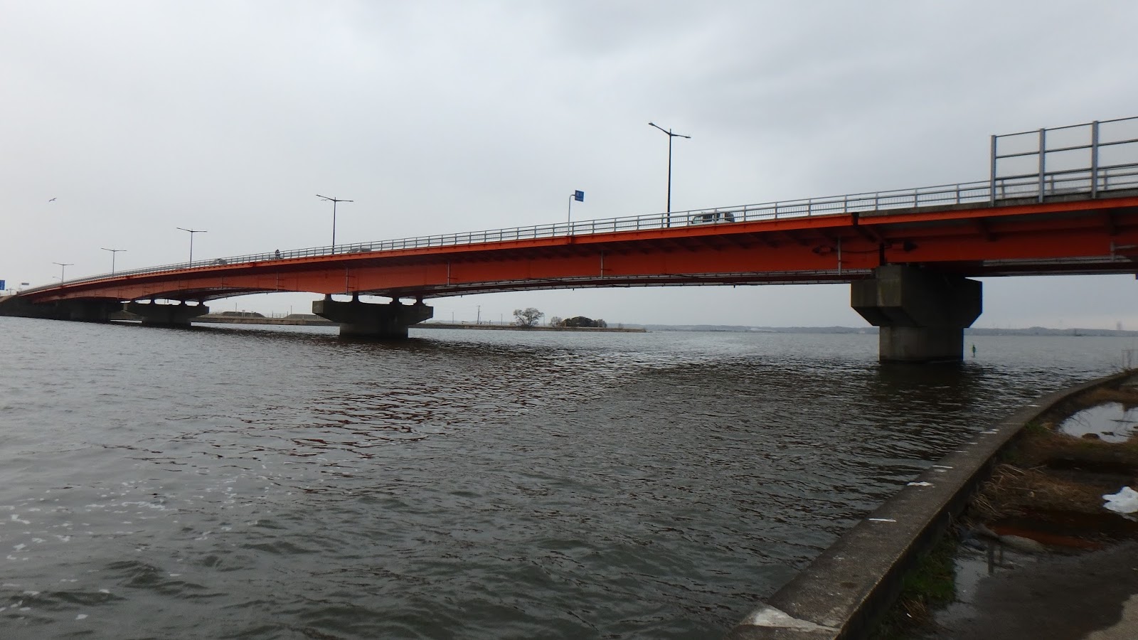やけに水が流れている。結構強い流れで、ルアーがかなり流される。水門開いているのかと思ってHPで調べたらやっぱり開いていた。ダウンショットで5gのシンカー使ってもかなり流されてしまう。ダメだ、、水温低くて、しかもこんなに流れが強かったら、テトラの奥の方に行っちゃうだろ?でやっぱりここも無反応でした。また移動する。与田浦へ。