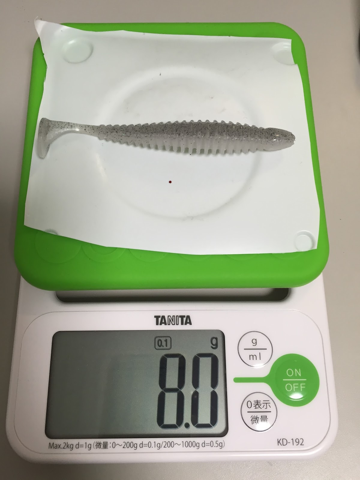 重さは8gある。軽いシンカー付けて10gぐらいにして使うのも良いかも。