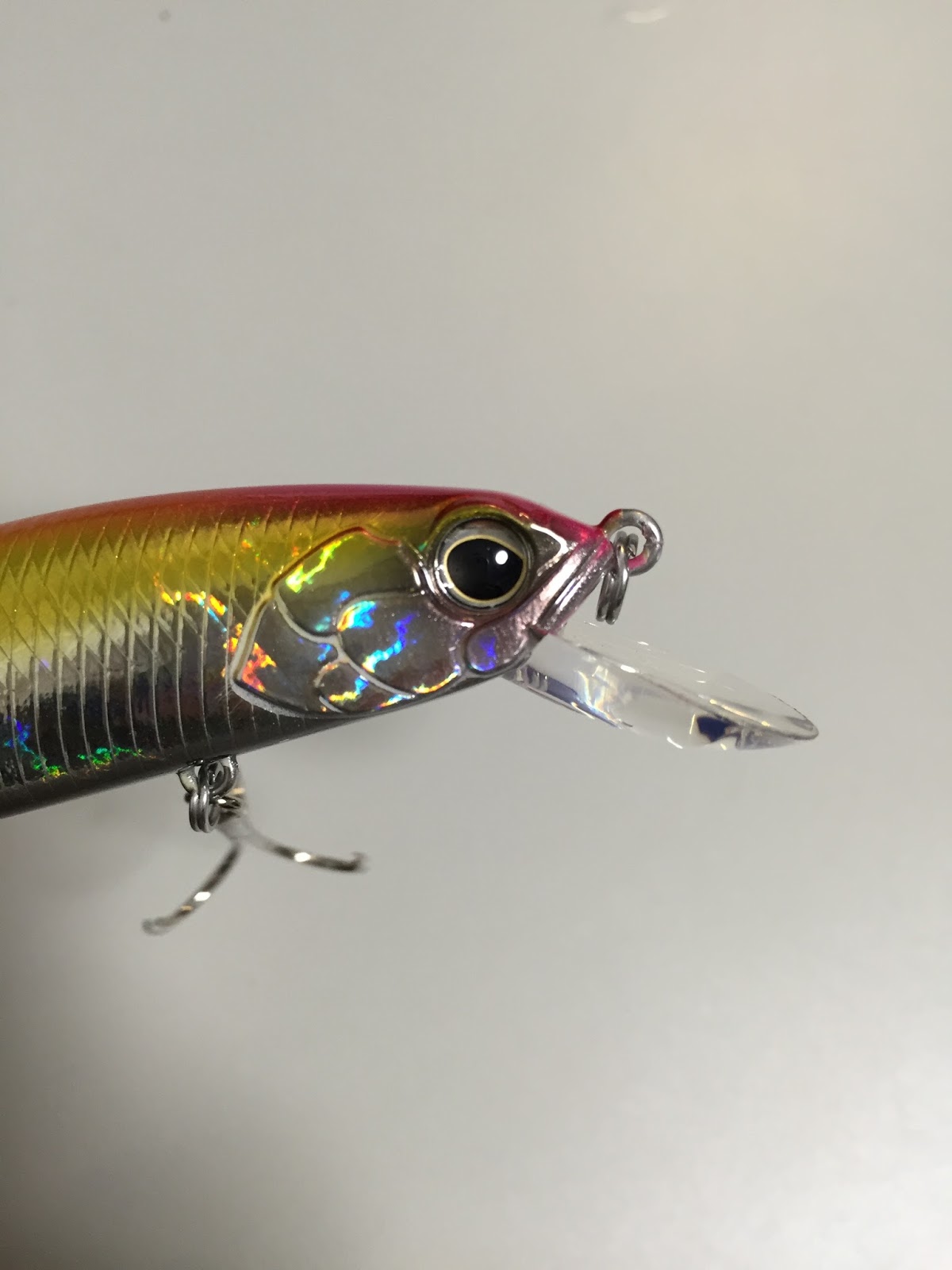 全長は11cmちょい。ルドラより小さいが太いので大きく見える。フェイスはモリゾーさんの作成したミノーらしい。釣る自信のある道具だけしか使わないという意味でフェイス(自信)というネーミングのようです。リップは結構でかいけど潜行レンジは1.0~2.0mぐらいでそんなに潜らない。