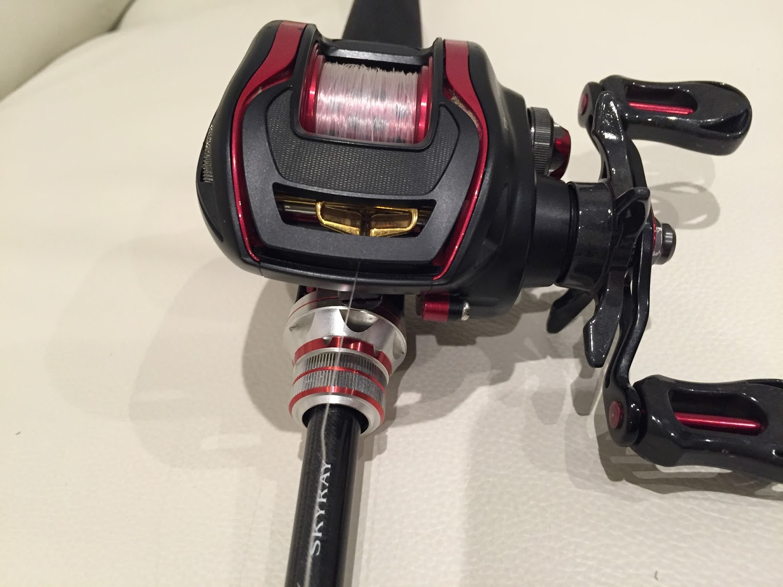 まずデザインが良いです。リールもロッドもワインレッドのラインが入っていて、マッチングが最高です。ダイワのベイトフィネス用の商品は大体この黒のベースに赤色が入っていますが、リールとロッドを両方この色で揃えると最高にカッコイイです。