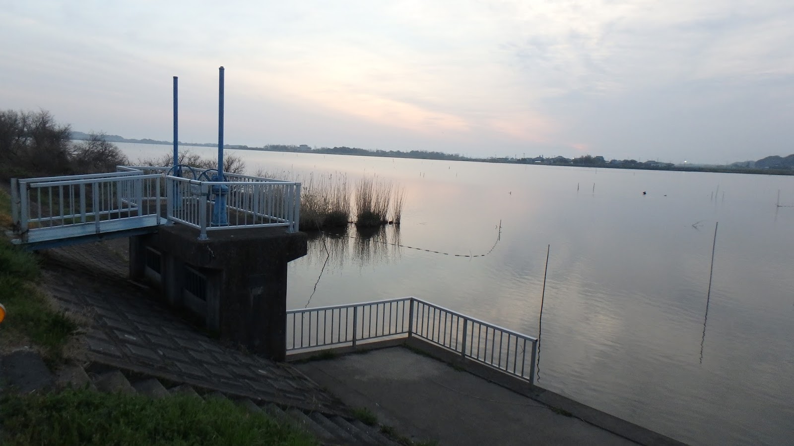 昼食前にまた与田浦とか横利根川に戻って釣りしたが、反応なし。やばいボウズか?今日は暑いくらいで日中は22℃まで上がった。表水温は18℃まで上がった。にも関わらずバスの活性は低い感じがする。やはり濁りと減水の影響かな。昼食後はなぜか常陸利根川へ行ってみることにした。