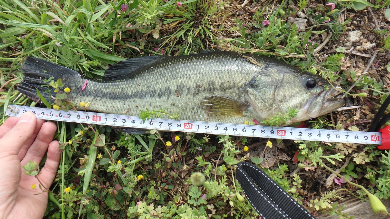 36cmぐらいのバスでした。痩せてましたね。冬眠から覚めたばかりの個体かもしれない。ルアーはいつものエグジグハイパー3/32ozに、トレーラーはスイングインパクト3インチです。タックルはベイトフィネス。