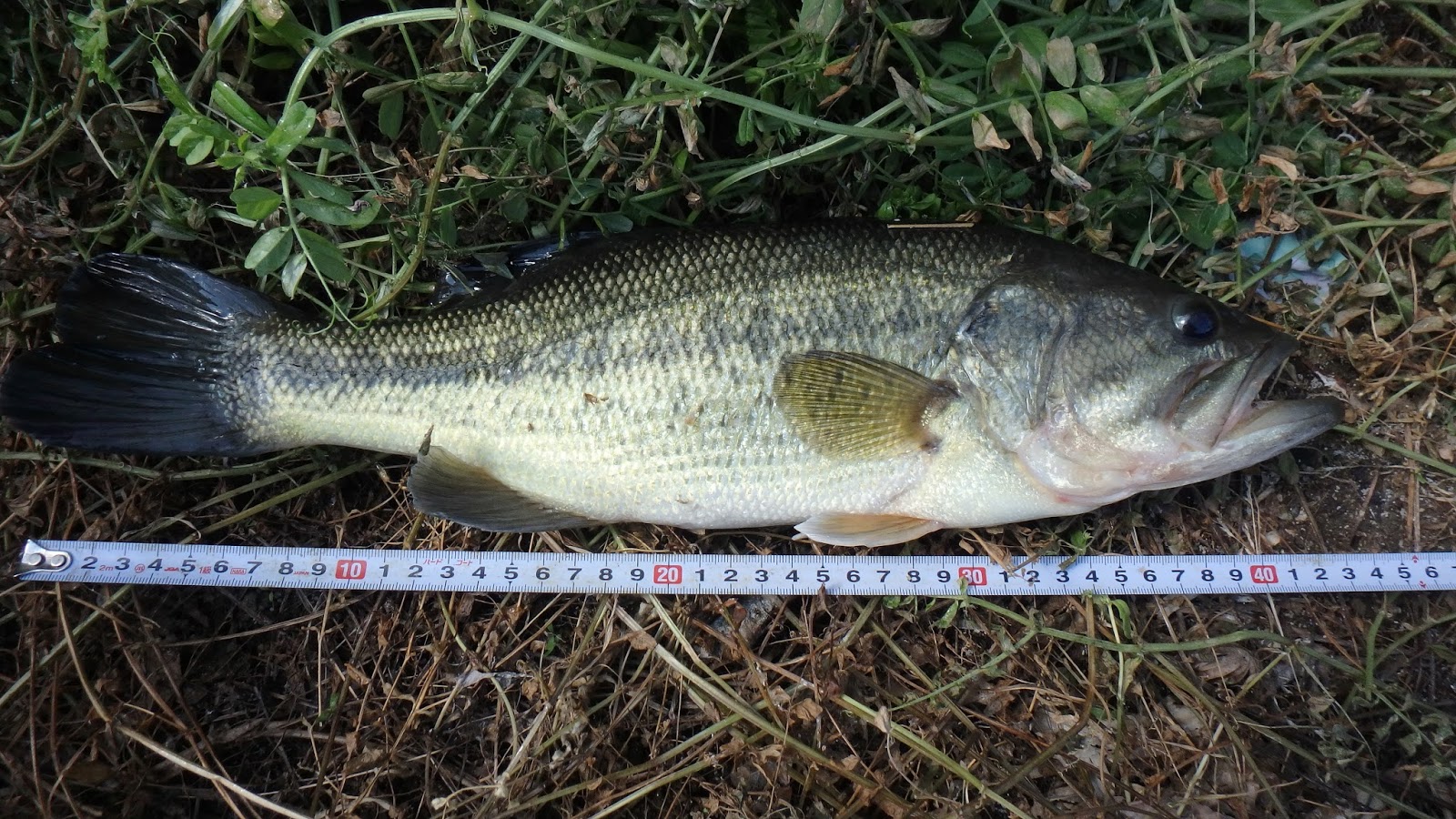43cm。つに40upキター。なんとこれが今年初の40upだ。やっと釣れた。重さは1,000g前後。ルアーは安定のスイングインパクト2.5inch。シンカーは3.5g。 ラインはフロロ8lb。今回はスピニングではなくベイトフィネスSKYRAYとT3AIR。