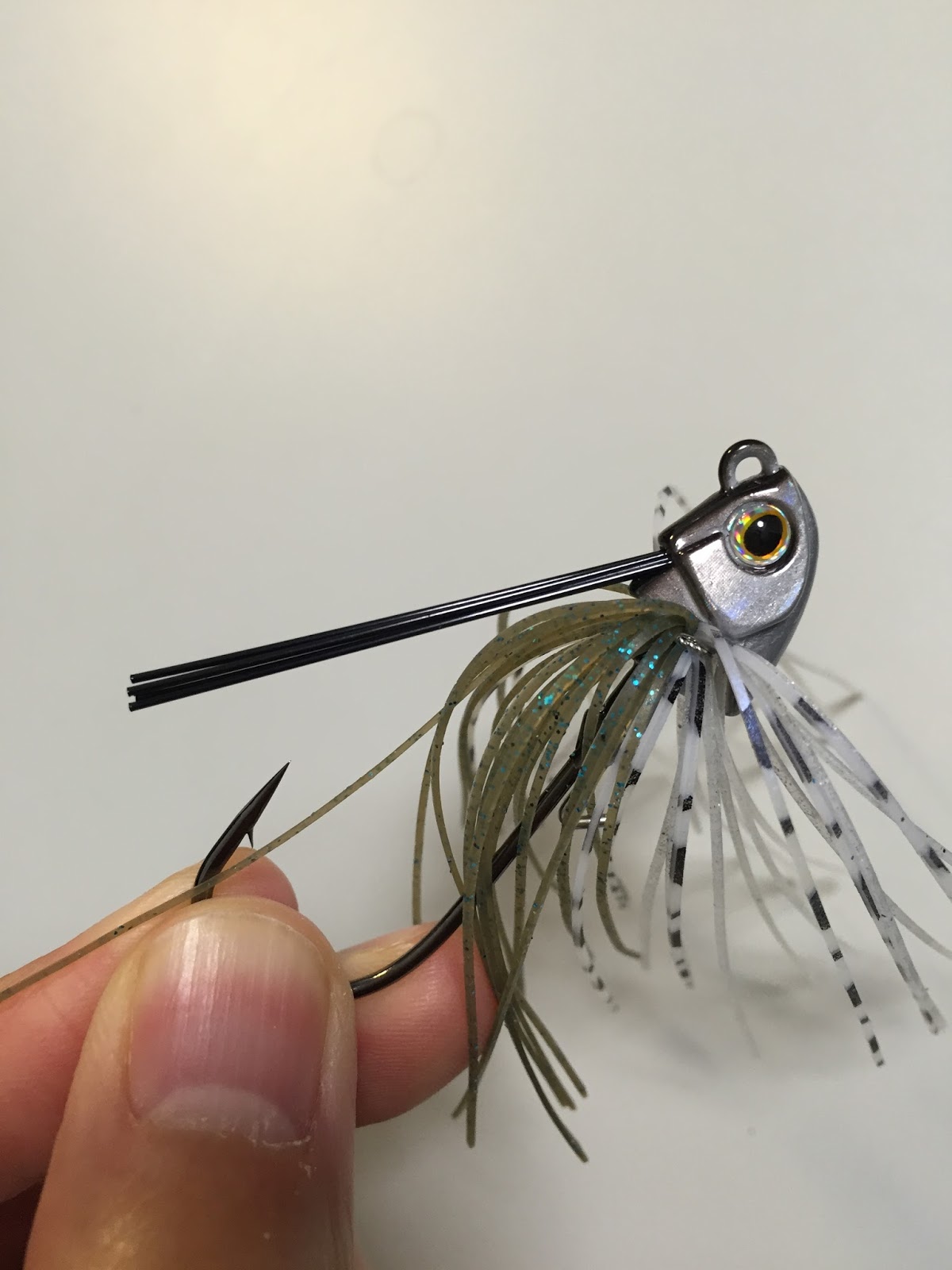 ガードは結構少なめだが、これくらいで良いと思う。ラバージグの堅いブラシだとフッキングする気がしないんだよね。スイミングさせるだけならガード無しでもいいが、全く無いのちょっと心細い。この程度のガードならちょうど良いかな。