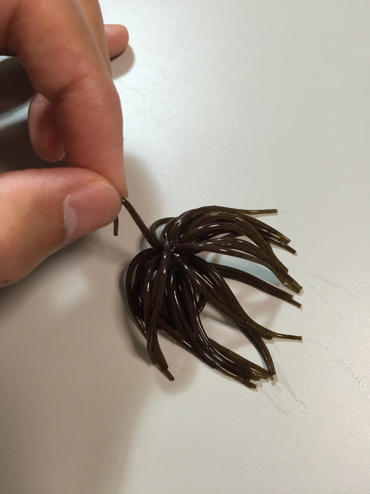ホッグワームにフラスカートが付いている。まあこれは普通に釣れるでしょ。こんだけヒラヒラが付いていればね。スモラバの代わりになるな。コスト的にもスモラバより安くなるので良いかも。まあワームとしてはかなり高価だね。1個あたり150円。なかなかこういうワーム作るのは大変そうだから、コストがかかるのだろうね。