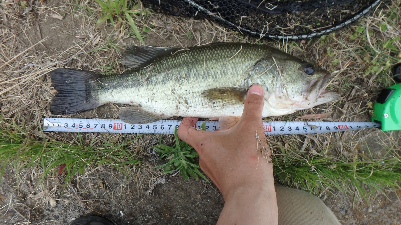 33cmぐらい。アベレージサイズ。プリプリしてて、良い個体でした。夏になってきて大分バスも元気になっている感じ。ルアーはいつものスイングインパクト2.5inch。シンカー3.5g。ライン8lb。ベイトフィネスタックルです。