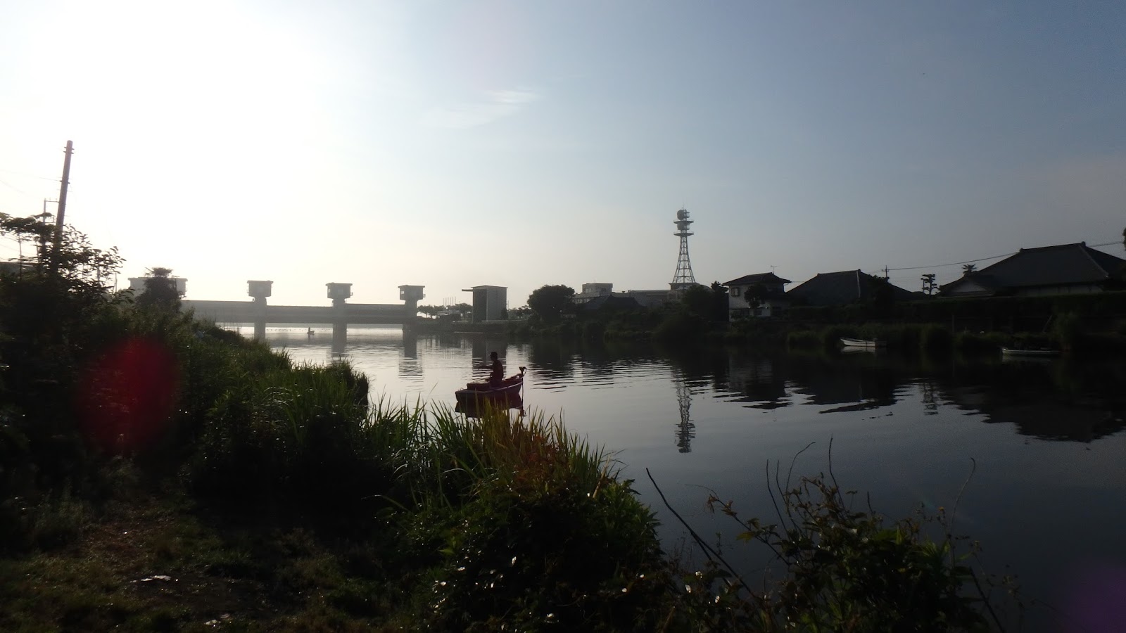 水門近くの畑のあるところに行ってみた。ここは結構有名な場所だが、今までやったことなかったので、試しに行ってみた。なかなかここも良さ気な場所だ。しかし開始してすぐに一気にボートがこちらに押し寄せて来てしまった。レンタルボート屋がOPENしたようだ。だめだ、、ボートとオカッパリとポイント取り合いになる。もっと朝早く行かないと駄目だね、、。