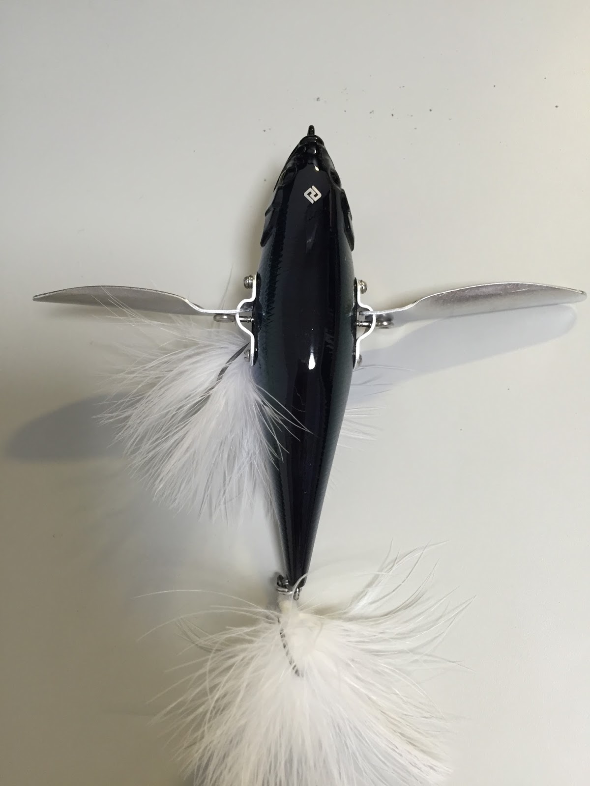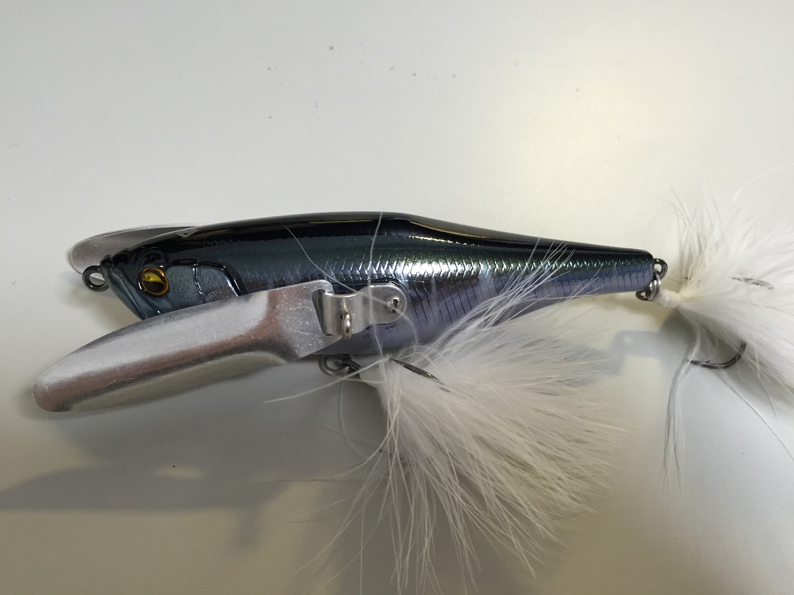 横から見た図。やっぱデカイな。色はオイカワかな。フックについたフェザーが特徴的ですね。