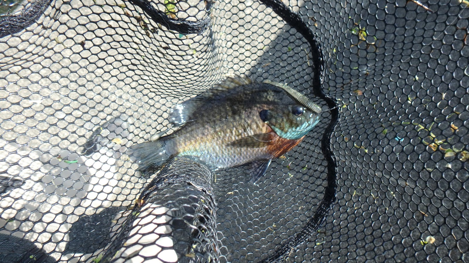 出ました。ギルだ。琵琶湖での初フィッシュはギルでした。しかしギルもデカイわ。20cmぐらいある。カスミのギルより一回りデカイな。そしてその後すぐに、またキマシタ!お次は、、。
