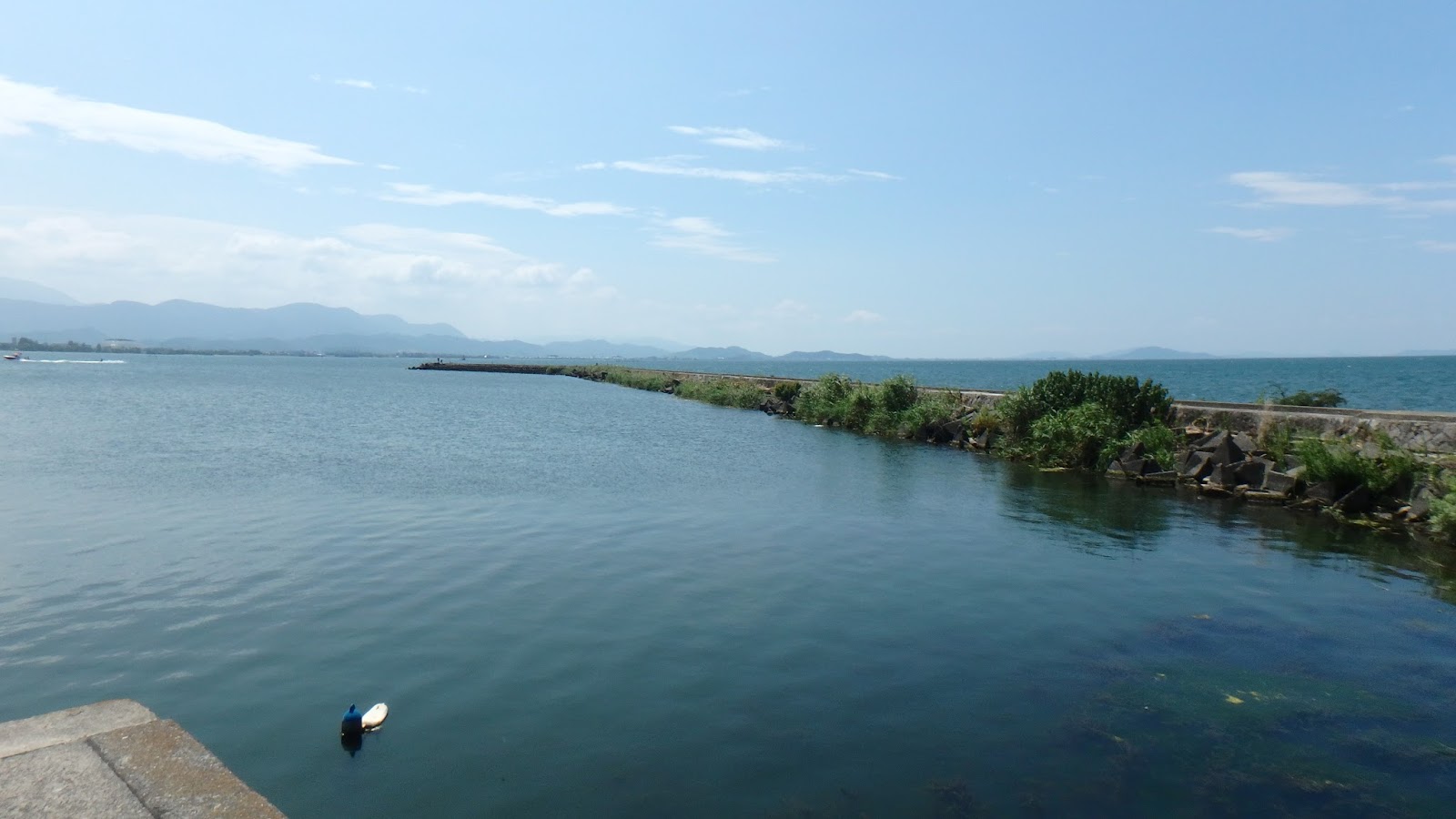 家を出てから6時間弱で到着した。意外と早かったな。半日以上かかるイメージだったが、まだ朝だよ。とりあえず彦根港に行ってみたが、デカイな。海でしょ?この堤防は。