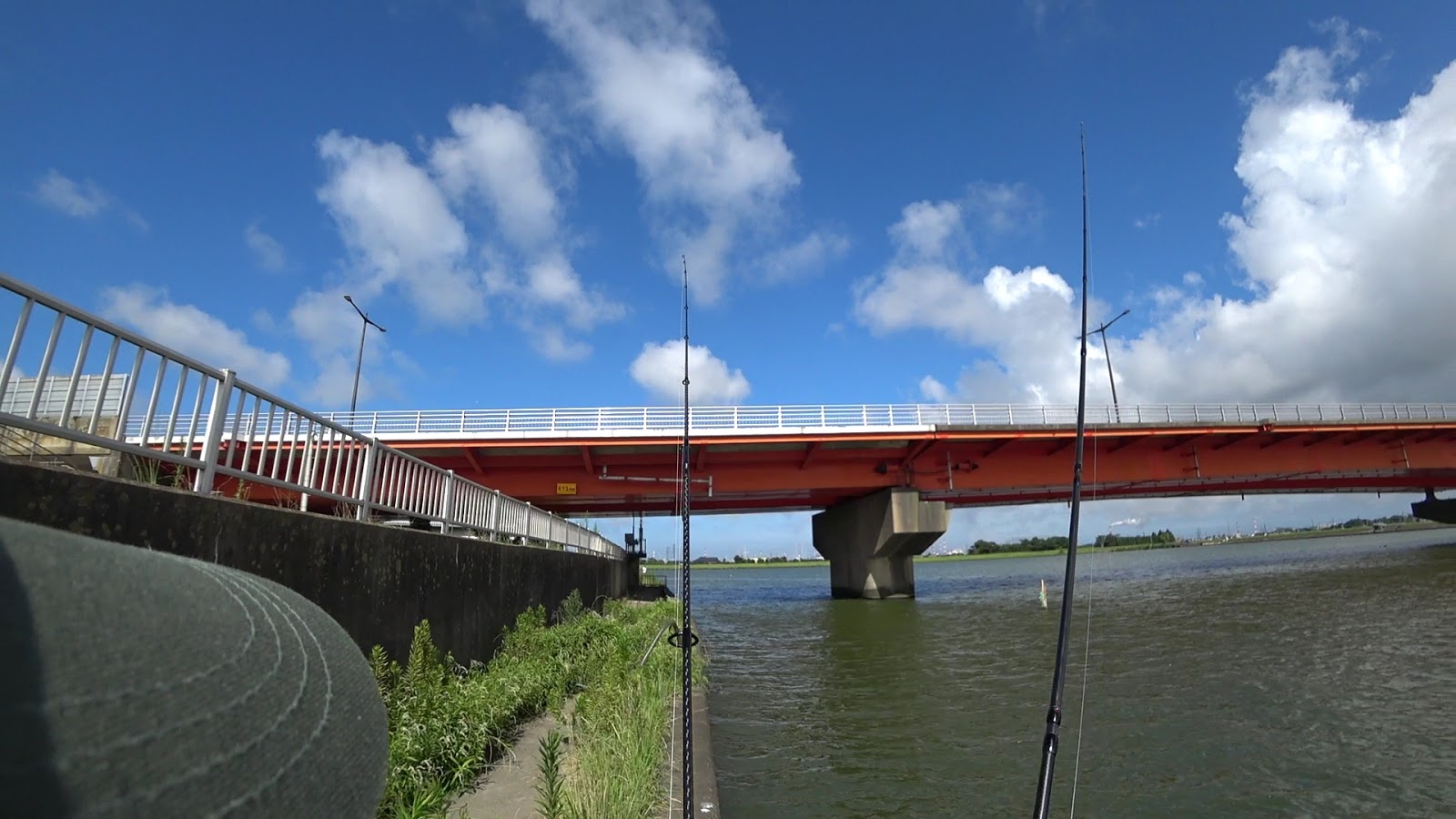 ここも暑いが、良い風吹いている。ここもいつも通り護岸際やテトラなどを攻める。ここで水温を測ってみると29℃だった。前川より少し低い。ギルのバイトは結構あったので、バスも居るはずと思って粘ったところ、グイグイっとキマシタ!かなり引いたデカイかも。
