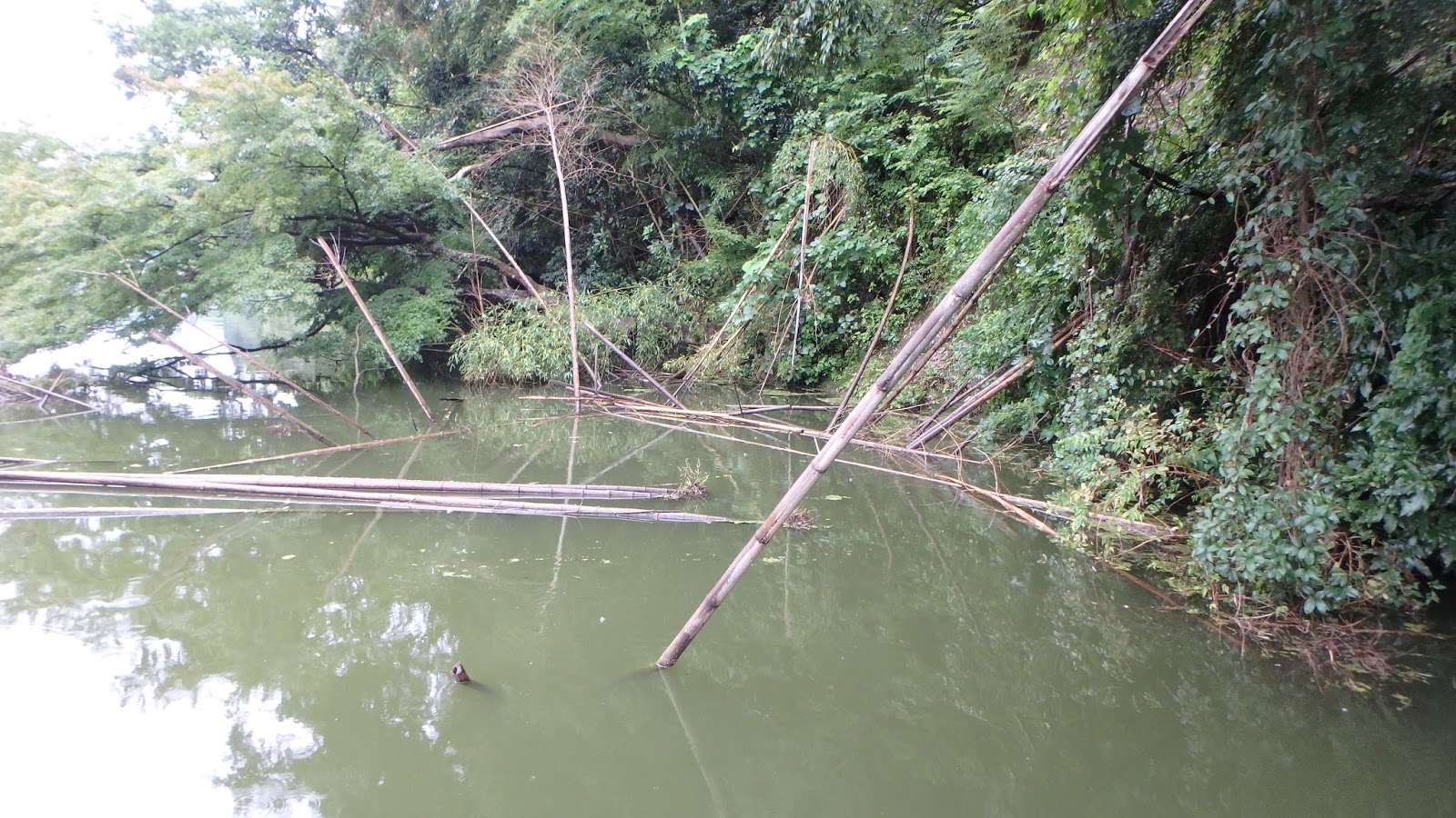 31cm。ちょっとだけサイズアップ。この2匹を釣って、またちょっと移動しながら、カバーをネコリグで攻め続ける。しかし、その後が続かない。雨もかなり強くなってきた。カバー撃ちはとにかくひらすらやり続けるしかない。いつかアタリが来ると信じて気を抜かないようにしないといけない。しかしオカッパリと違って、ボートでの撃ちモノは大変だよね。ボートをステイさせるのが難しい。よくカバーにボートを突っ込んでポイントを潰しています。ポイントクラッシャーですわ(*´∀`)。こんな感じのところ。