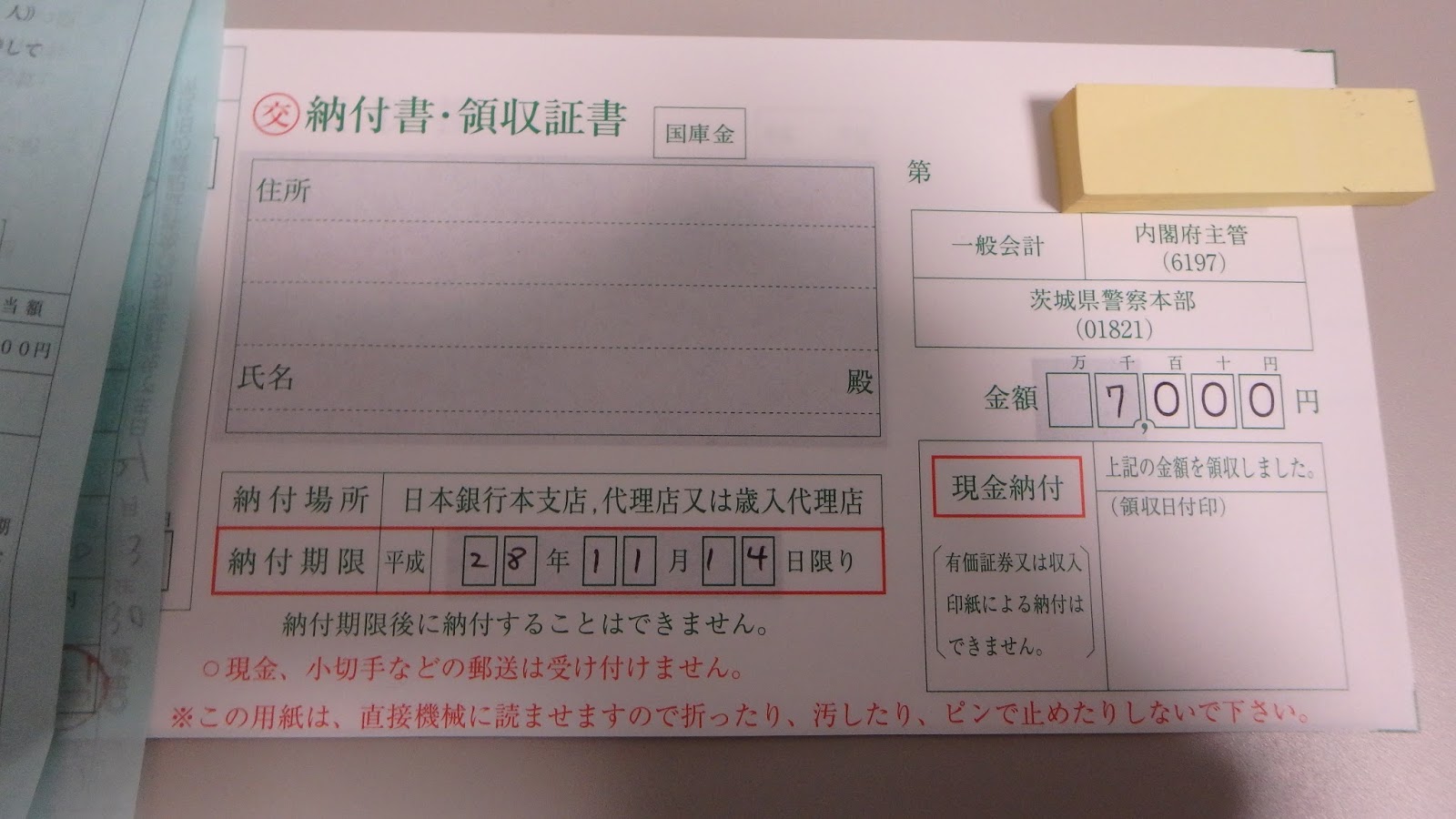 一時停止違反で切符を切られました。7,000円の罰金です。チクショー!ヾ(。`Д´。)ノ