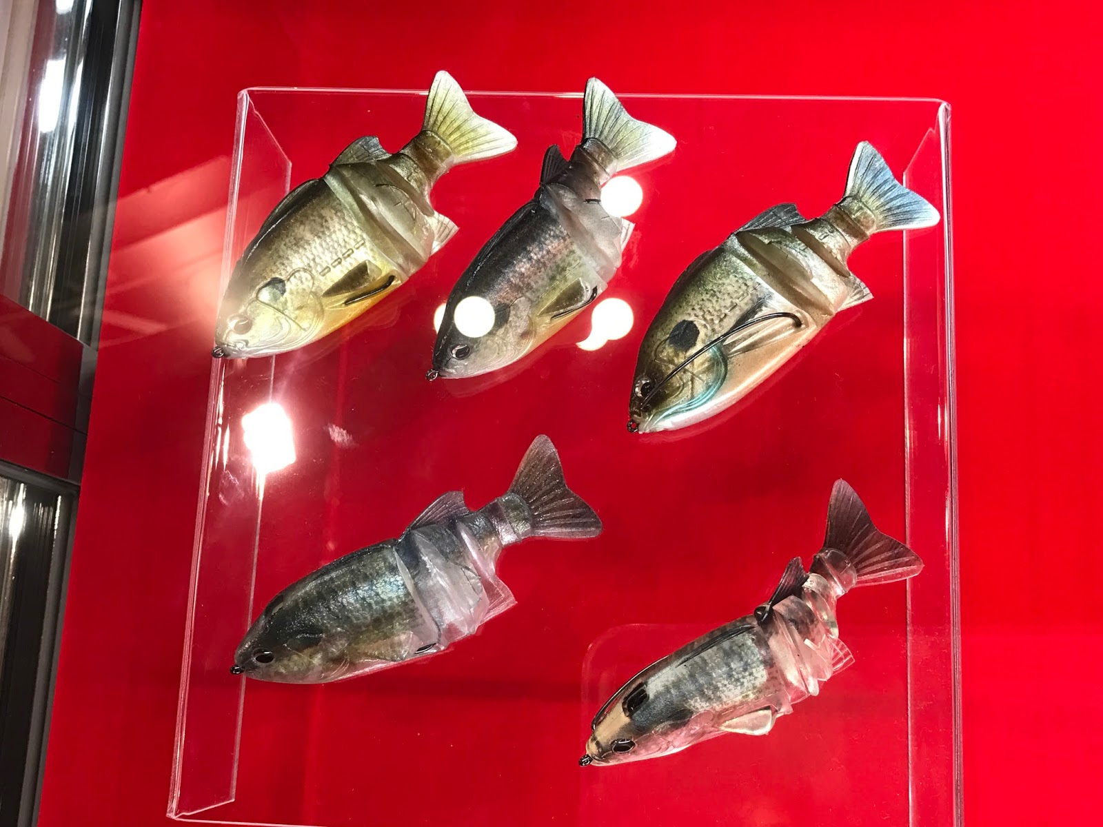 で、ぶらぶらしていたら東レ・イマカツブースに着いたので、話題のジャギルを見た。動画で見た印象より小さかったね。もっと大きいと思ったので、意外だった。写真よりさらに小さいモデルもあるがそっちはギルというよりタナゴぐらいの大きさだったね。
