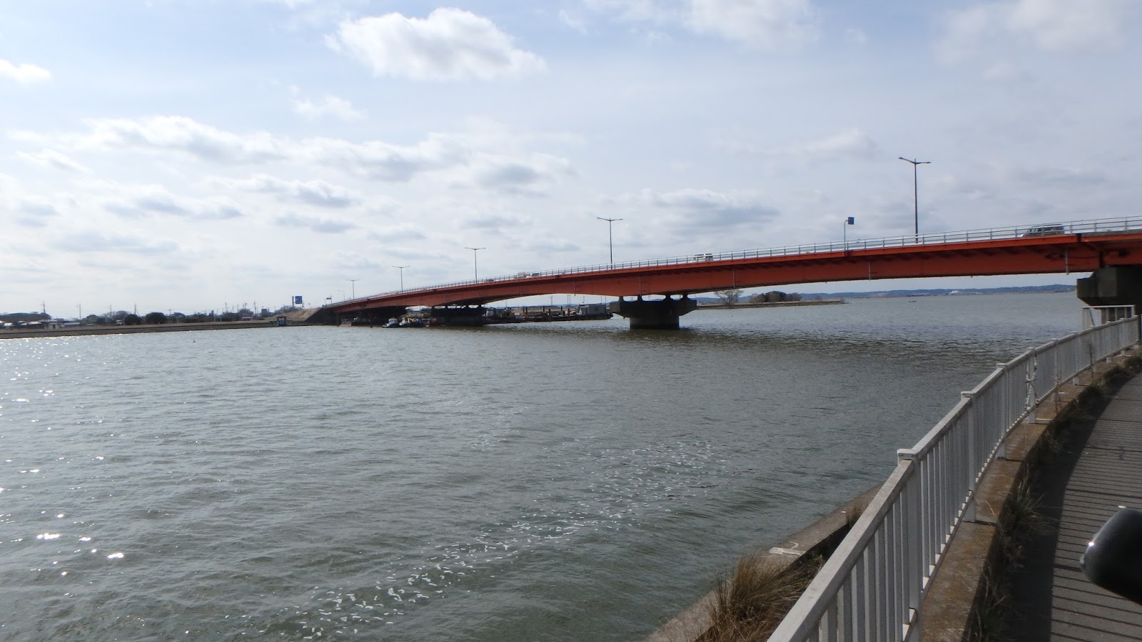 北浦西岸のいろいろな場所をランガンしましたが、まったく異常なしです。ちょっと風が弱かったな。午後になると少し風が強くなる予報だったので、午後に期待したいところだ。鹿行大橋まで北上したところで、昼休憩を取り、午後はまた西岸を南へ向かって再度良さ気なポイントをチェックすることにした。