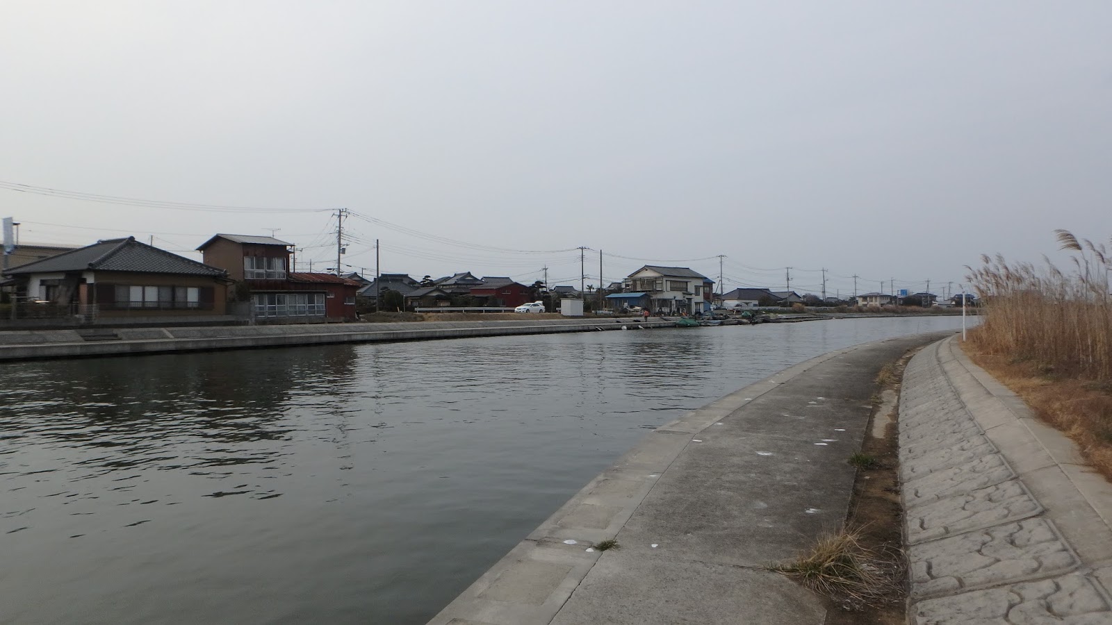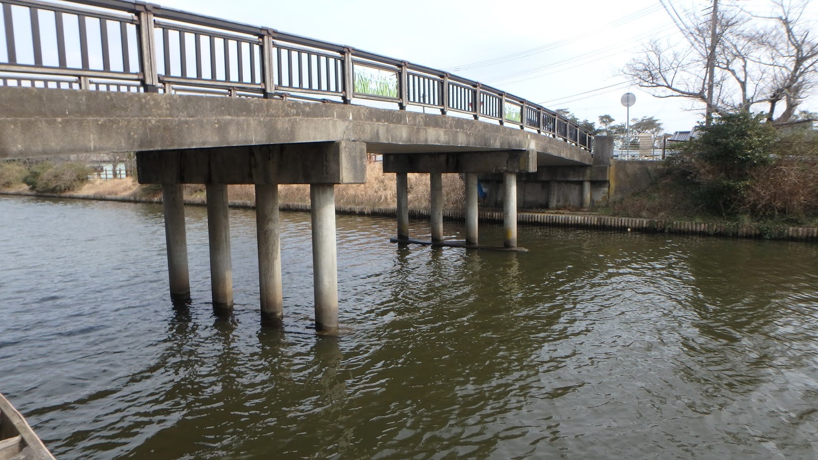 風はほとんどなく、気温も10℃ぐらいまで上がった。水温は測っていないが7℃ぐらいのはず。ここでミノーを巻いて、ピンポイントでネコリグで攻めるが、まったく反応なし。釣れそうな雰囲気あったがまったく駄目でした。移動する。横利根川へ。