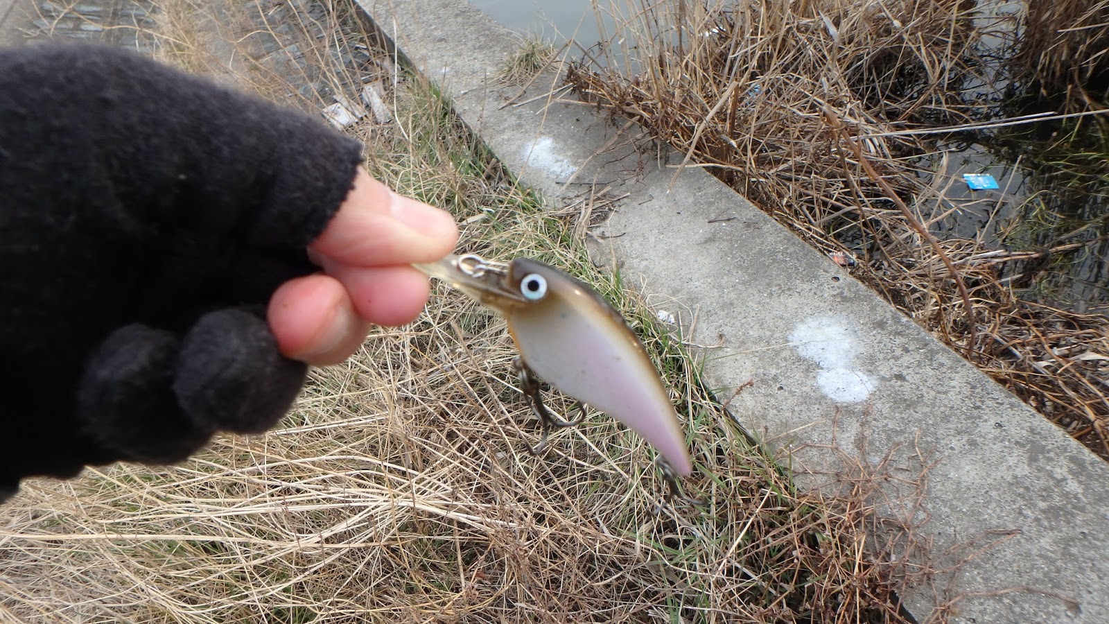 本日2匹目です。この魚は冬の間に大量に放流されるので、春になるとよく釣れます。ということで、このプラスチックの魚以外はまったく釣れない(;´Д`)。最後の横利根川もまったくバスの反応なく17時頃に本日の釣行は終了しました。