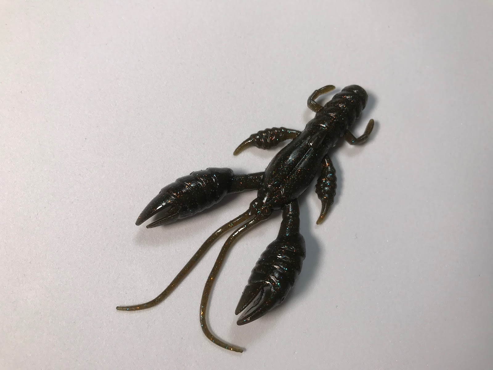 爪のアップ。やはりデカイですね。形も良いですね。足も付いているが、これも結構重厚感ある作りになっている。なかなかこだわって作られていますね。まあ一袋6本しか入っていないので、高級品ですわ。バスはこの高級ワームを見て、ちゃんと甲殻類と認識して喰っているのだろうか?