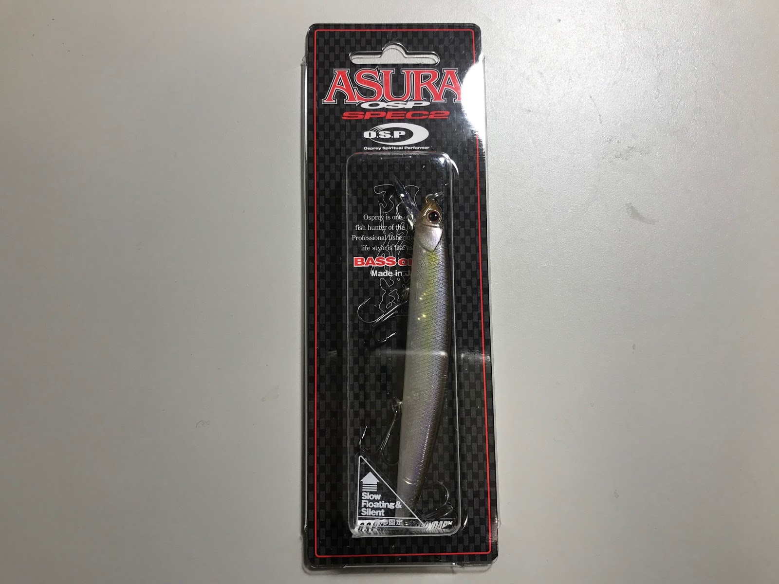 OSPのASURAアシュラスペック2です。今までOSPのルドラとヴァルナは持ってましたが、やや小さめのミノーも欲しいなということで購入しました。最近は流行りでデカイのばっかりですね。