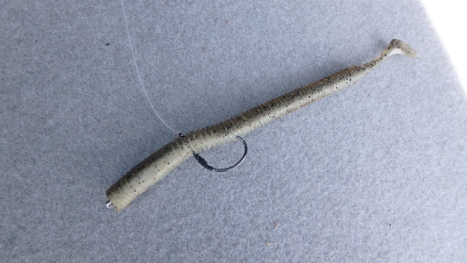 最後もう一匹釣りたいところだが、なかなかうまくいかないのが世の常だ。ここでもネコリグで攻めるが、反応なし。もう一匹釣ったし、今日はいいかな~なんて思っていた時になんとググっと重くなった!なんとキテました!慎重に取り込んでなんとかGET!