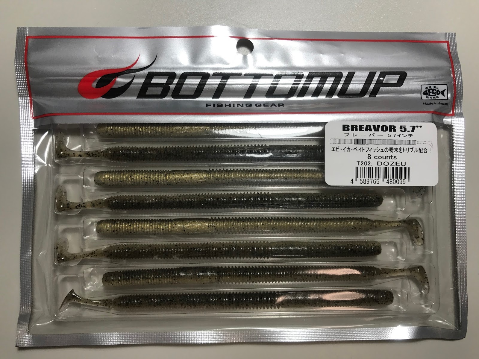話は変わり、今日は最近使いまくって釣果を上げているボトムアップのブレーバーのネコリグセッティングについてご紹介です。今年発売されたばかりのワームですが、川村光大郎さんはすごいワームを作ったなと思うね。地味だからあまり話題になってないような気もするが、、。