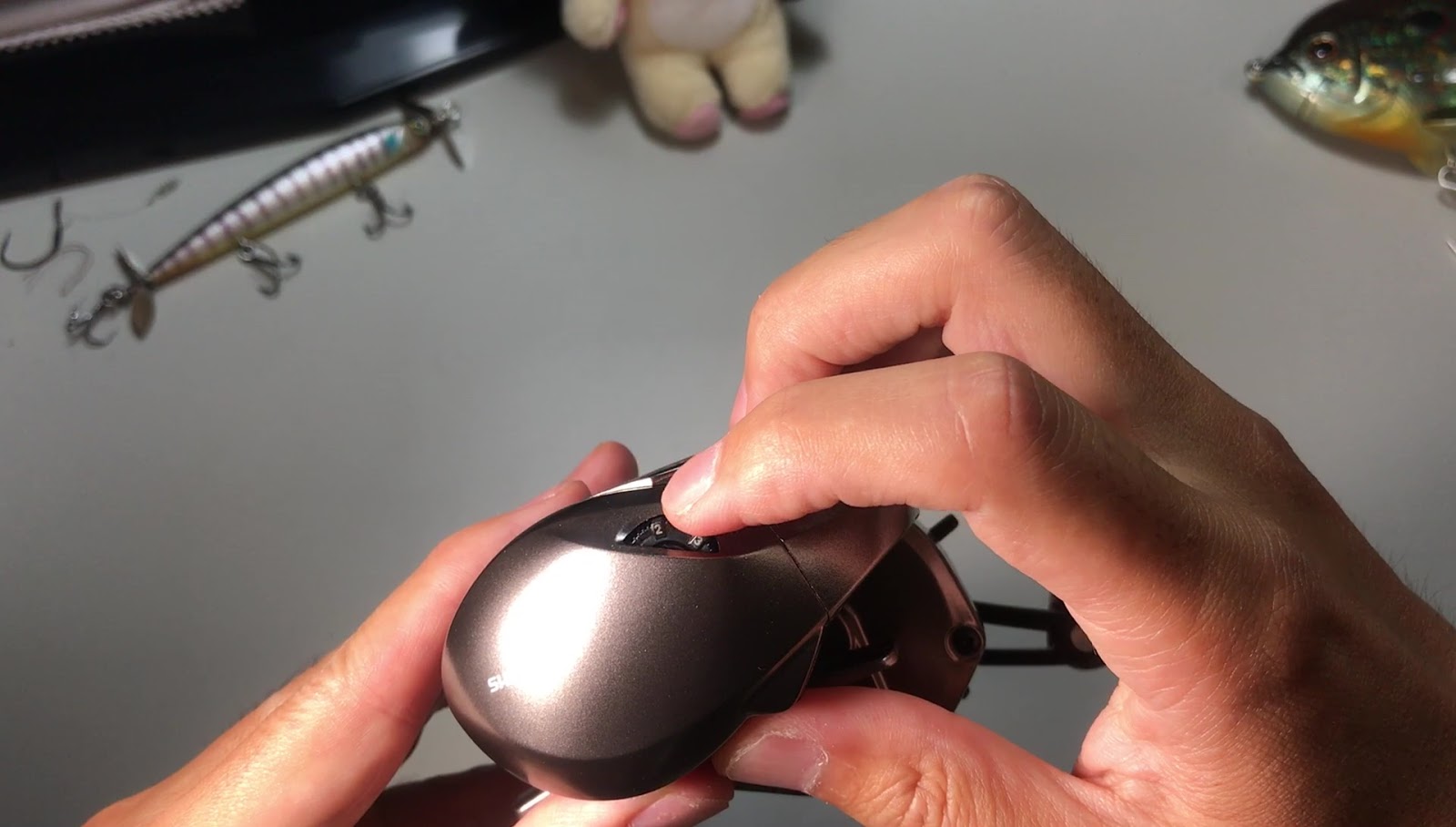 サイドプレートで6段階のブレーキ調整ができます。実際にここで調整してもたいした差を感じない。これはシマノリール全般に言える。ダイワのマグネットブレーキはここがすべてなので、かなり調整幅があるが、シマノはプレート開けてからの調整もあるので、そっちがメインのようですね。
