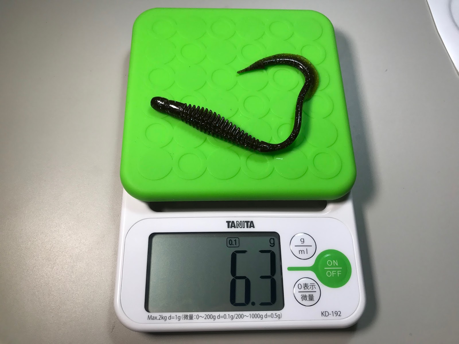 重さは6gある。やっぱボディが大きいので、ボティを半分カットして使いたいな。喰わせワームとしてかなり使えると思う。