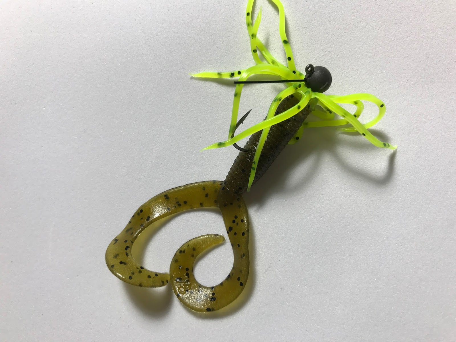ジグヘッドを付けてみた。スモラバの代わりになるだろと思ってました。スモラバを使うより安上がりで済む。フラグラブは一本あたりの単価が160円と高いが、ジグヘッドが1個150円としてもトータル310円です。スモラバ1個買うよりお得ですよ。