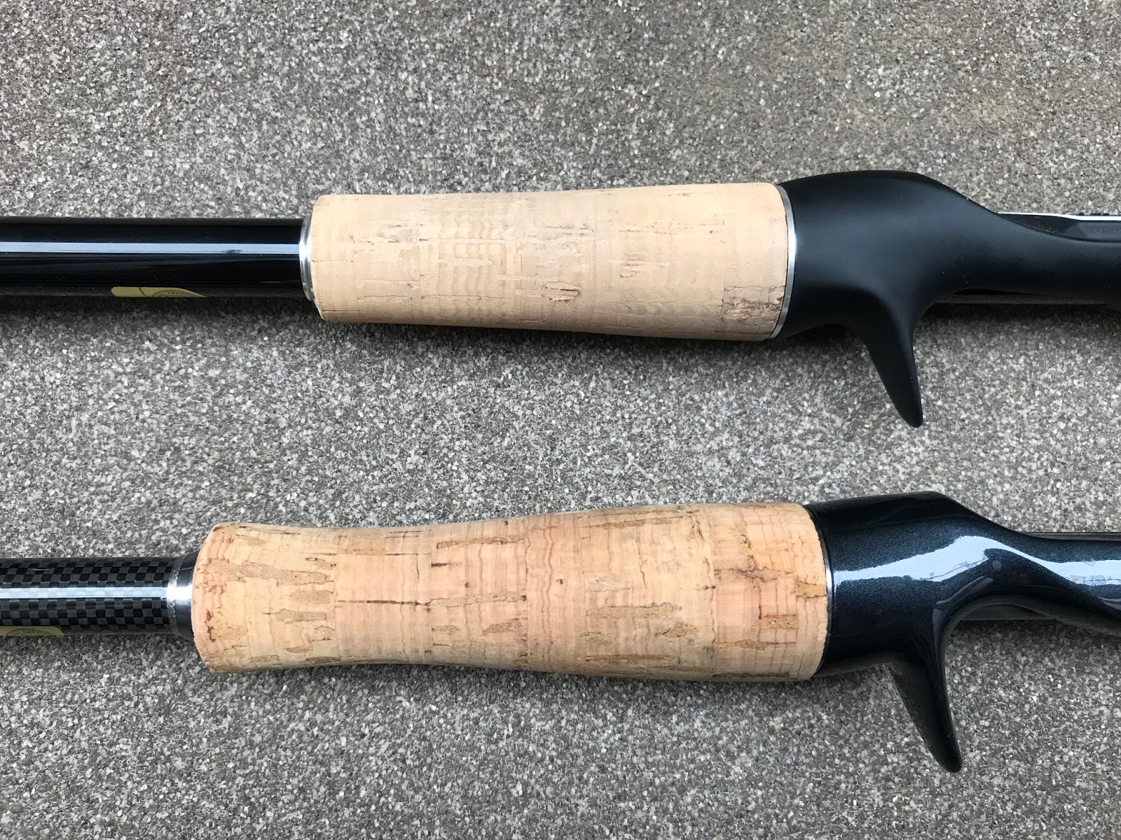 ロッドの型は、両方共6フィート6インチのMロッドです。同じような型でこれだけ差がある。シマノロッドには特に不満はないし、ダイワと比べても特に遜色ない。ていうかシマノの方が良いくらいの印象があるが、グリップについてはダイワの方が良いね。このちょい短い事によって小指がグリップにしっかりかからない場合がある。長い方がしっかりと握れるのだ。これが正直シマノ製ロッドの一番の不満だな。