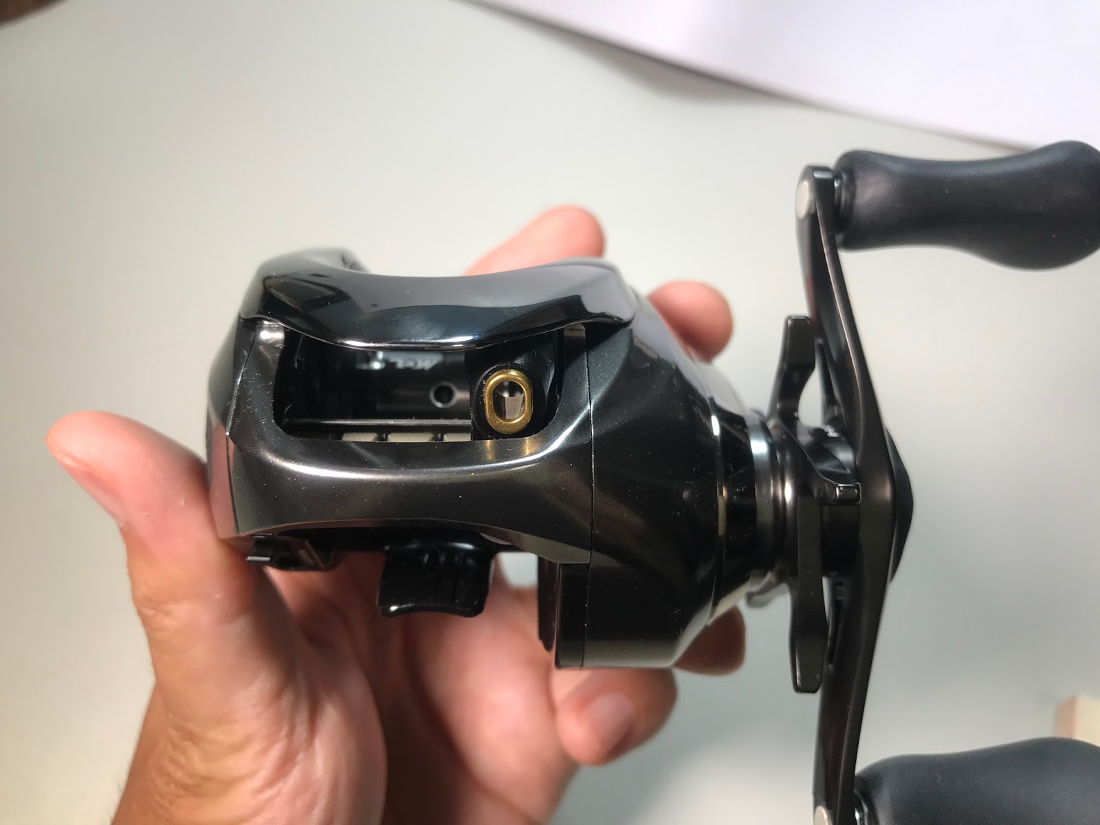 中にあるメカニカルブレーキは出荷時に最適な場所に合わせてあるとのことだったが、スプールがかなりカタついたので、調整しました。調整済みとはとても思えなかったのだが、、。