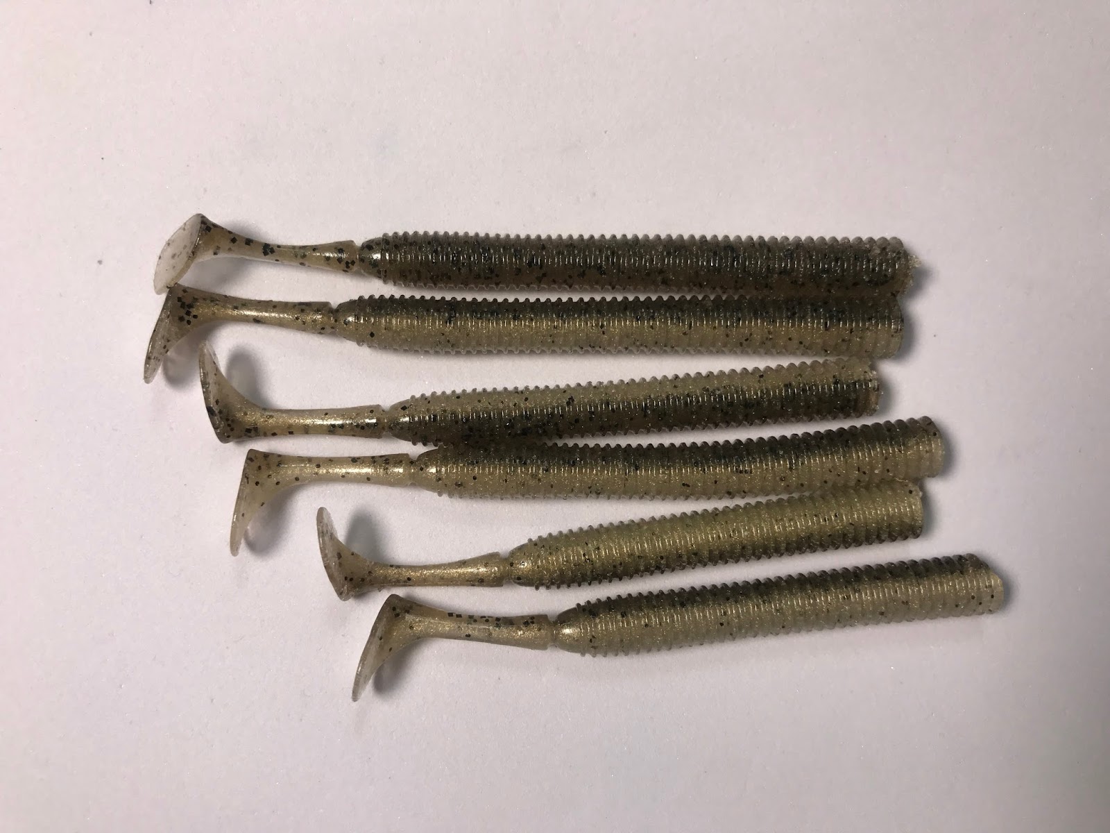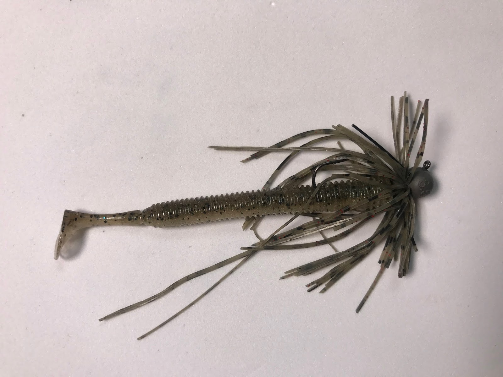 スモラバに付けたところです。テールの動きがとても良かった。シャッドテール系のワームよりこっちの方が良かったね。ストレートワームなんでジグヘッドに刺しやすいのも良い所ですね。スモラバのトレーラーってうまく付けるの結構難しいんですよね。