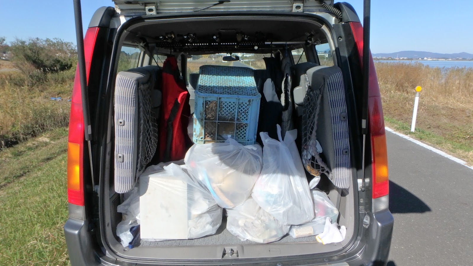 霞ヶ浦周辺でゴミを拾ってましたが、そのゴミのほとんどは家庭から出るゴミですね。釣り人が捨てたものではない。ゴミ袋をそのまま捨てているパターンが多いです。おそらくゴミの日にゴミを出し忘れて、霞ヶ浦まで捨てに来たのではないかな。