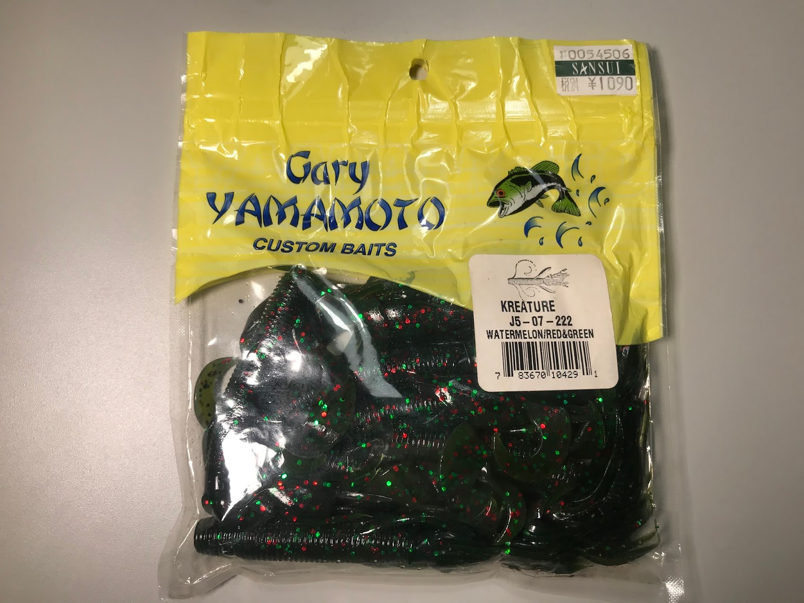 ゲーリーヤマモトのクリーチャーを買った。あまり最近は釣具屋で見かけないレア物ですね。見た目はかなりグロいです。ゲテモノ感が半端ないです。こんな形のモンスターがドラクエで居たような気がするわ。