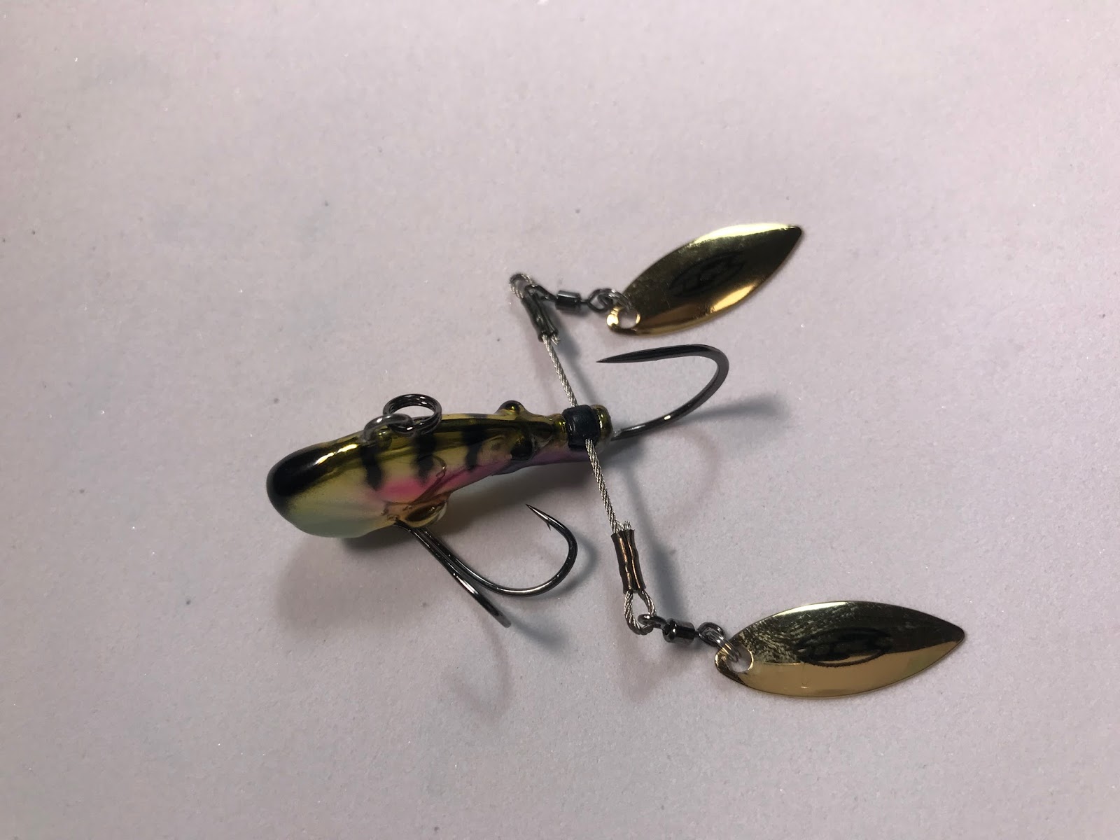 特徴は2つのブレードですね。バスはこれを何だと思って喰うのか?ザリガニだと思って喰うのか。こんな腕がキラキラ光るザリガニは居るはずがないのだが。使い方としては、メタルバイブレーションと同じように、リフトアンドフォールで使うのが基本のようだ。