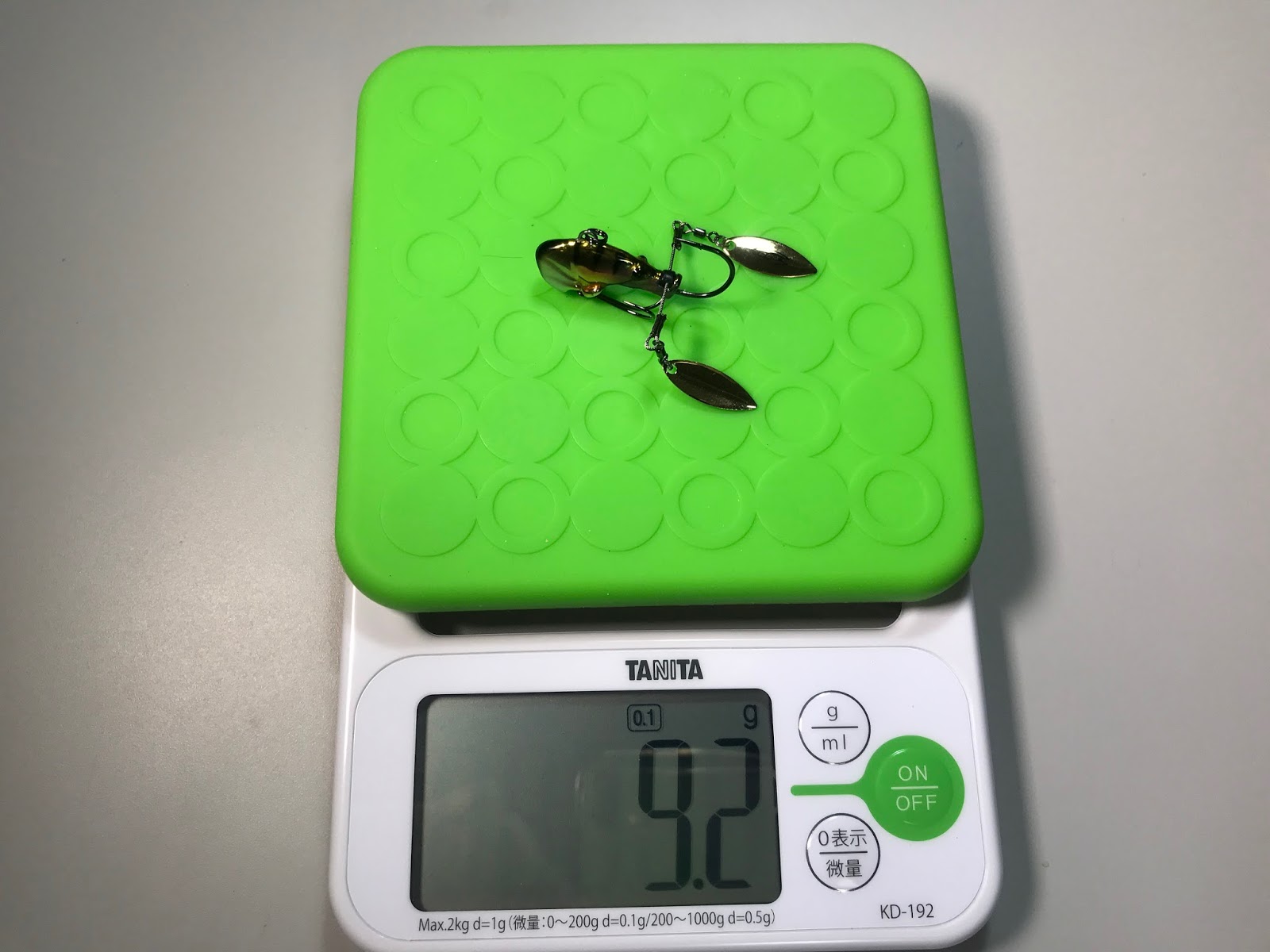 7g表示のもので実際には9gある。重さは7g、9g、11g、TG17gと色々用意されている。カラーもザリガニ系のものや金色のものなど色々展開されている。