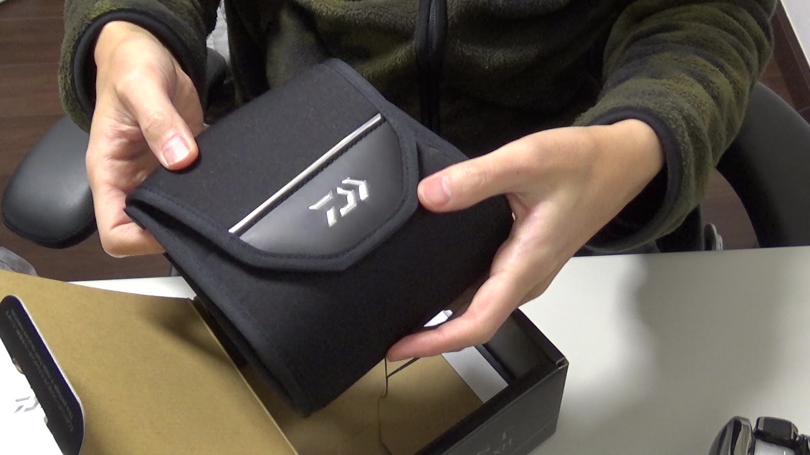 箱の中には、リールケースと説明書の2つのみ入っていました。至ってシンプルです。リールケースはなかなか高級な物が付いてます。普通のリールにはこのようなケースは付いていないが、さすがダイワのフラグシップモデルだけのことはあります。まあ、お値段が税込で7万5千円もしますからね。 ケースにも金をかけてもらわないと、、。