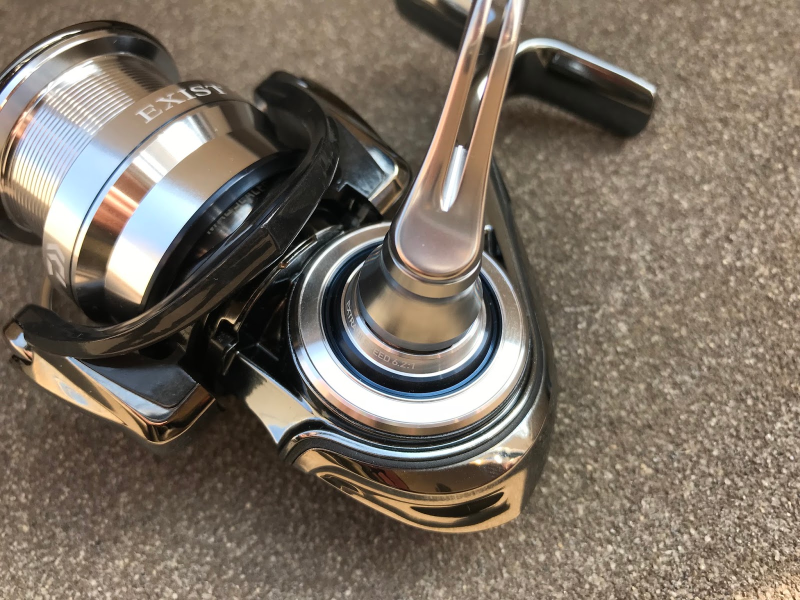 はい、出ました。18イグジストの高級感半端ないです。フィッシングショーでさんざん見てますが、やっぱり自宅で見るのとでは違います。ただですね、18イグジストは写真映りが悪い。フィッシングショーの時に撮った写真もイマイチ出来が悪かった。