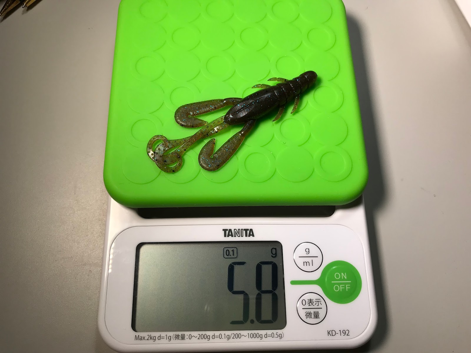 重さは5.8gある。3.5gシンカーのテキサスリグやリーダーレスダウンショットで使うと良いようです。フックは#2/0~3/0に合うとのこと。またFECO対応なので、JBNBCの大会でも使えます。