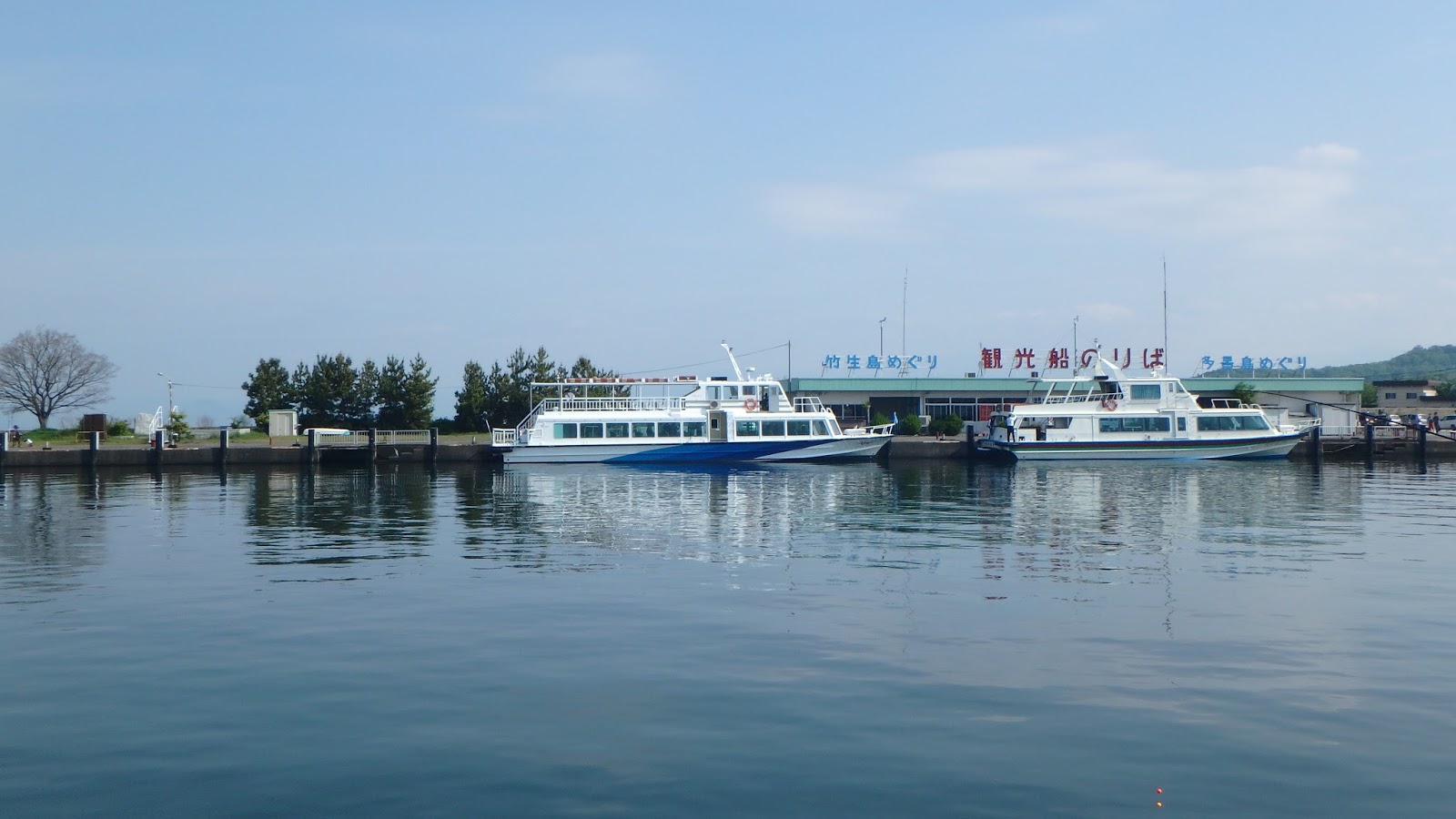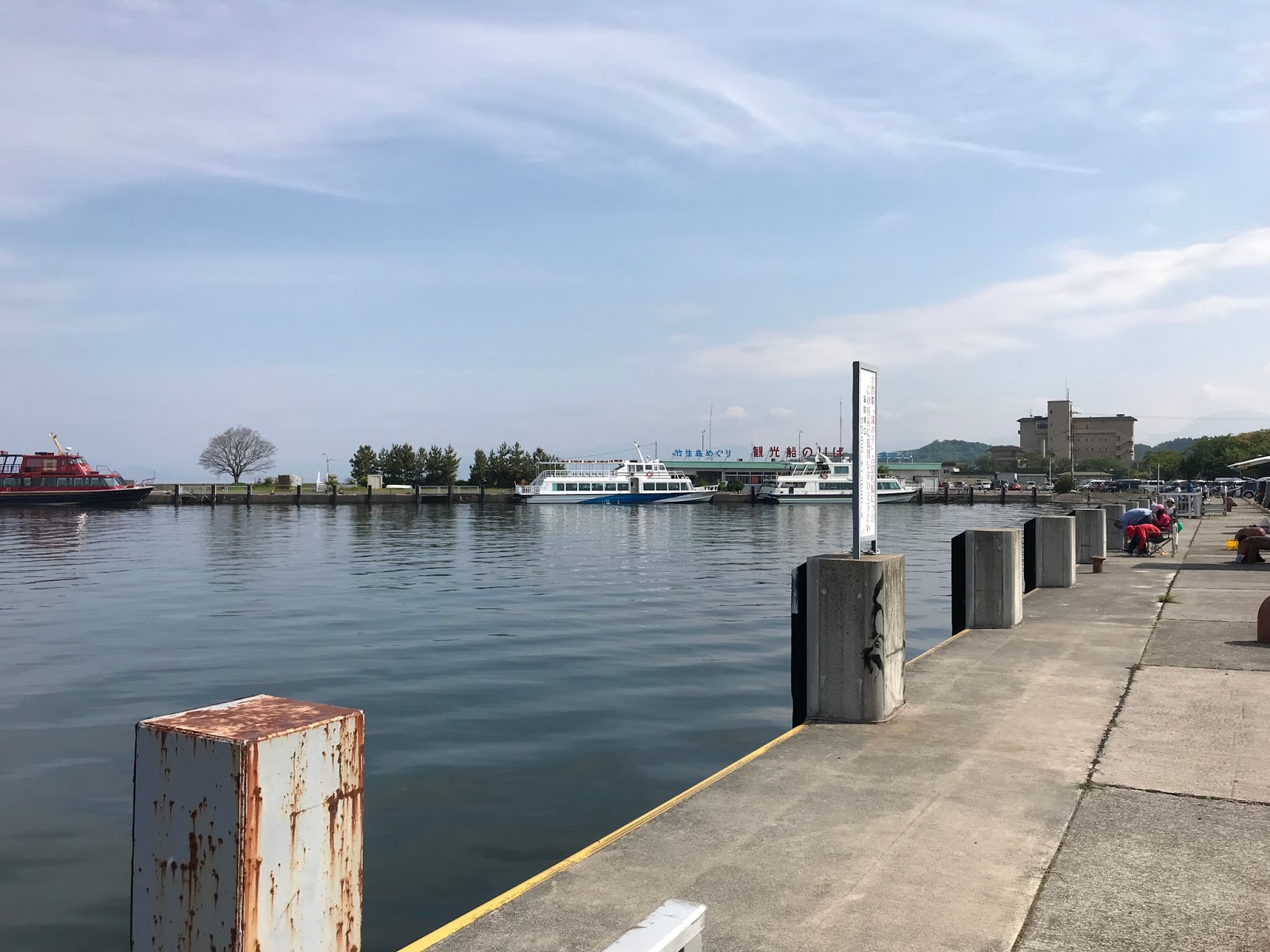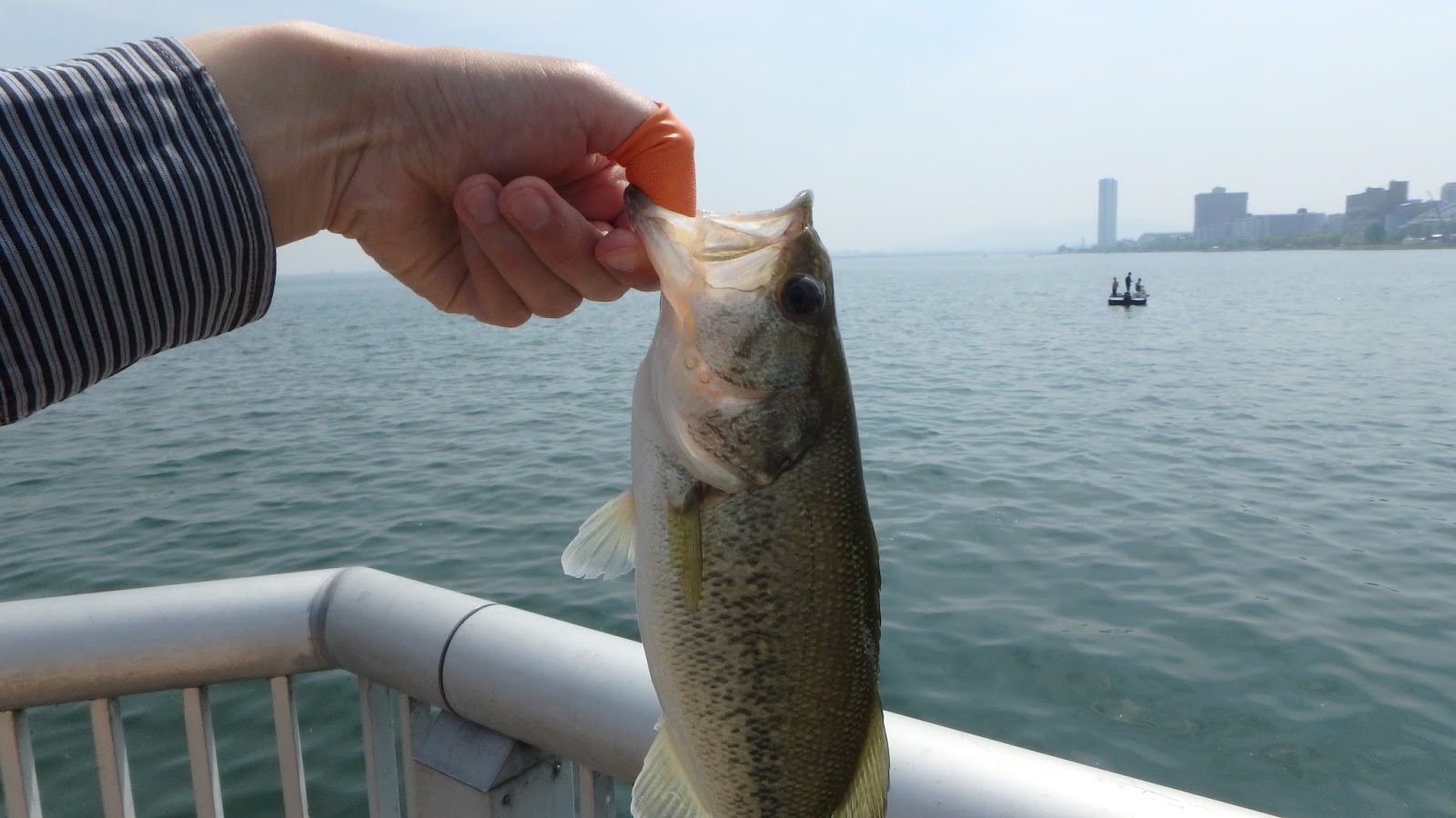 まずは彦根港で釣りを始める。水は綺麗でバスが結構見える。水温は20℃だった。去年のGWに来たときは17℃しかなかったので、今年は水温が高い。