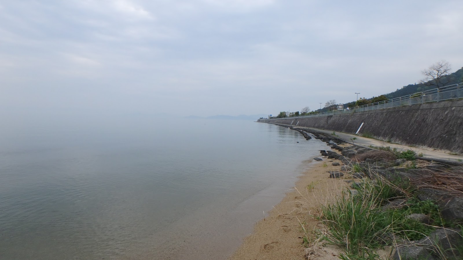 ウエーディングでのオカッパリポイントとして有名な和邇浜に行ってみた。ここも水はクリアで、風景も綺麗。ただ風もないし、釣るのは難しそうなポイントだ。