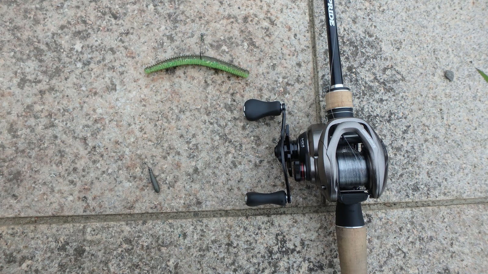 ここで1時間ぐらいあったので、実際に釣りをすることにした。フォールスティックも今まで使ったことがなかったので、試し釣りはやっておきたかった。本来なら先週やっとくべきだったのだが、ヘビキャロにハマってしまいやる時間がなかった。