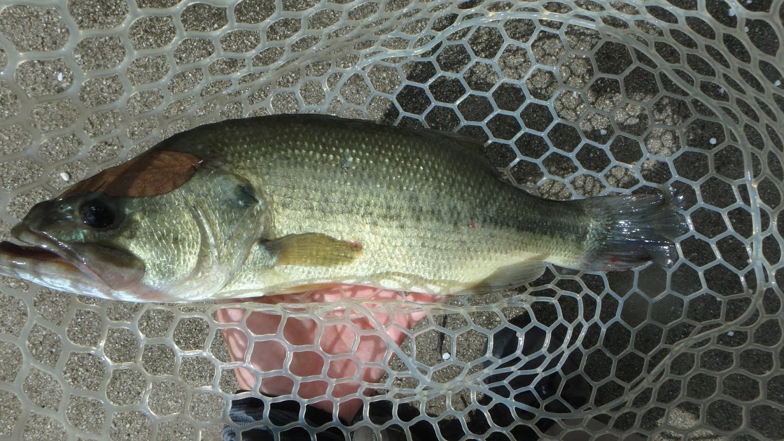 40cmちょうどぐらい。めちゃめちゃ痩せている個体。でもうれしい1匹目です。シザーコーム3inchのダウンショットリグできました。最近よく使うリグです。このバスは何度も釣られている感じで、顎が割れていたので、口を持たずにすぐリリースしました。